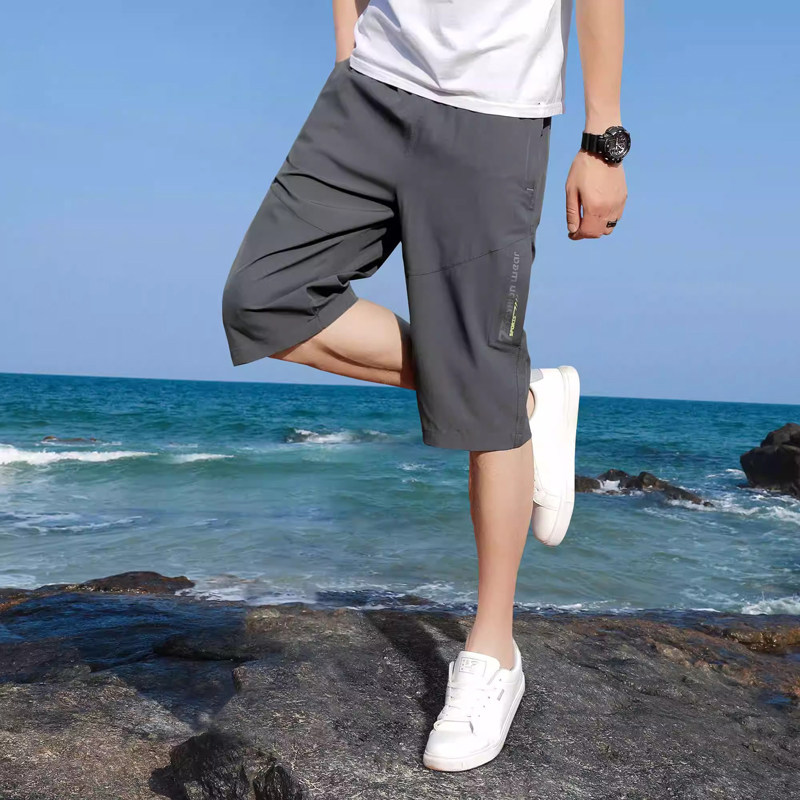 啄木鸟冰丝七分裤男夏季薄款运动短裤沙滩宽松中裤男士速干休闲裤