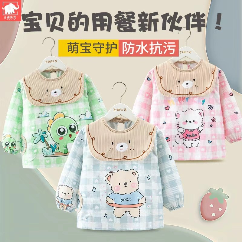 宝宝吃饭罩衣秋冬季外穿洋气防水儿童围裙反穿衣防脏长袖婴儿围兜
