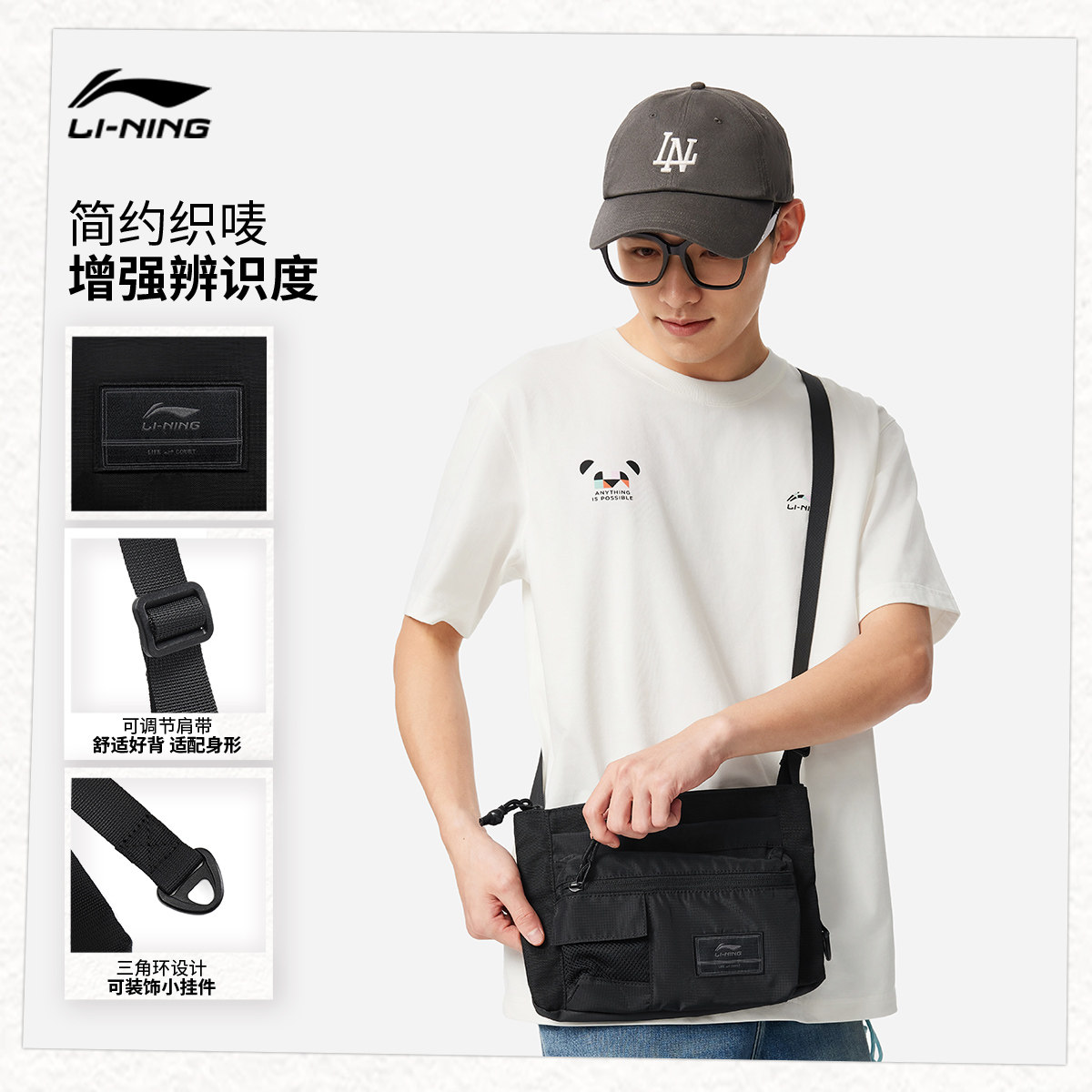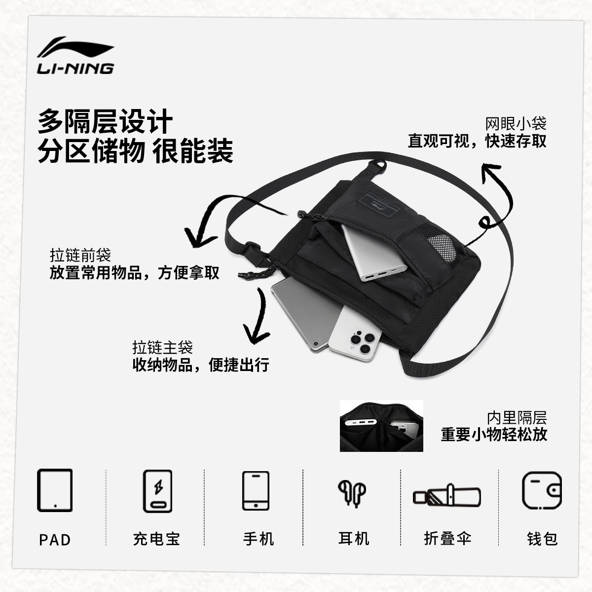 李宁斜挎包男女2026新款官方正品户外旅行轻便防泼水环保运动包