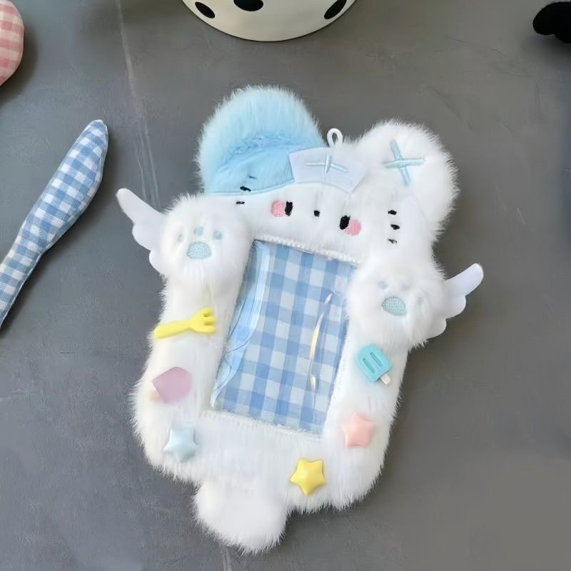 可爱毛绒卡套天使猫恶魔兔卡套三寸拍立得小卡照片收纳保护套挂件