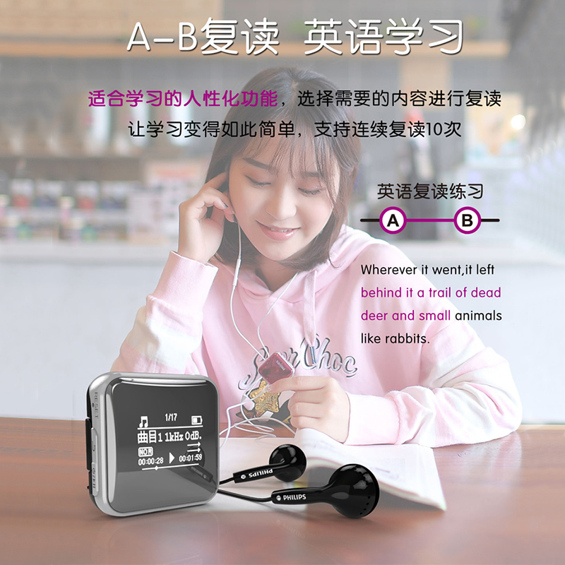 飞利浦SA2208学生MP3播放器运动跑步英语学习音乐有屏迷你随身听