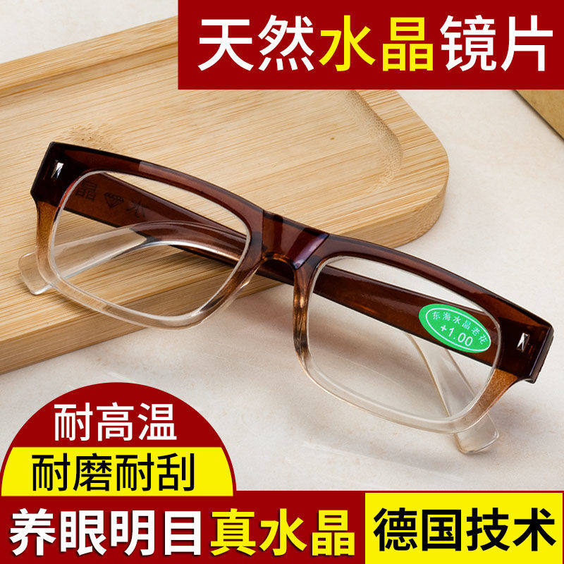 水晶石真品老花眼镜中老年高清石头镜男女防蓝光老花镜玻璃镜片