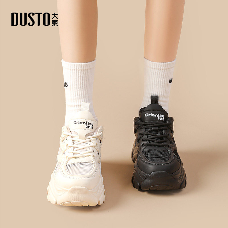 大东老爹鞋女鞋2025秋季新款休闲厚底系带圆头拼接帅气运动鞋0310