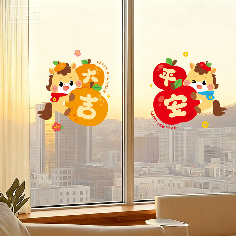 2026新年窗花马年装饰新款玻璃门贴纸静电橱窗贴春节氛围布置贴画
