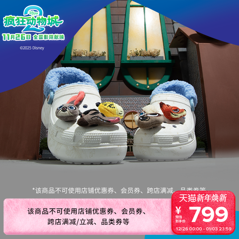 Crocs卡骆驰经典疯狂动物城云朵暖棉洞洞鞋厚底暖棉女鞋|211751