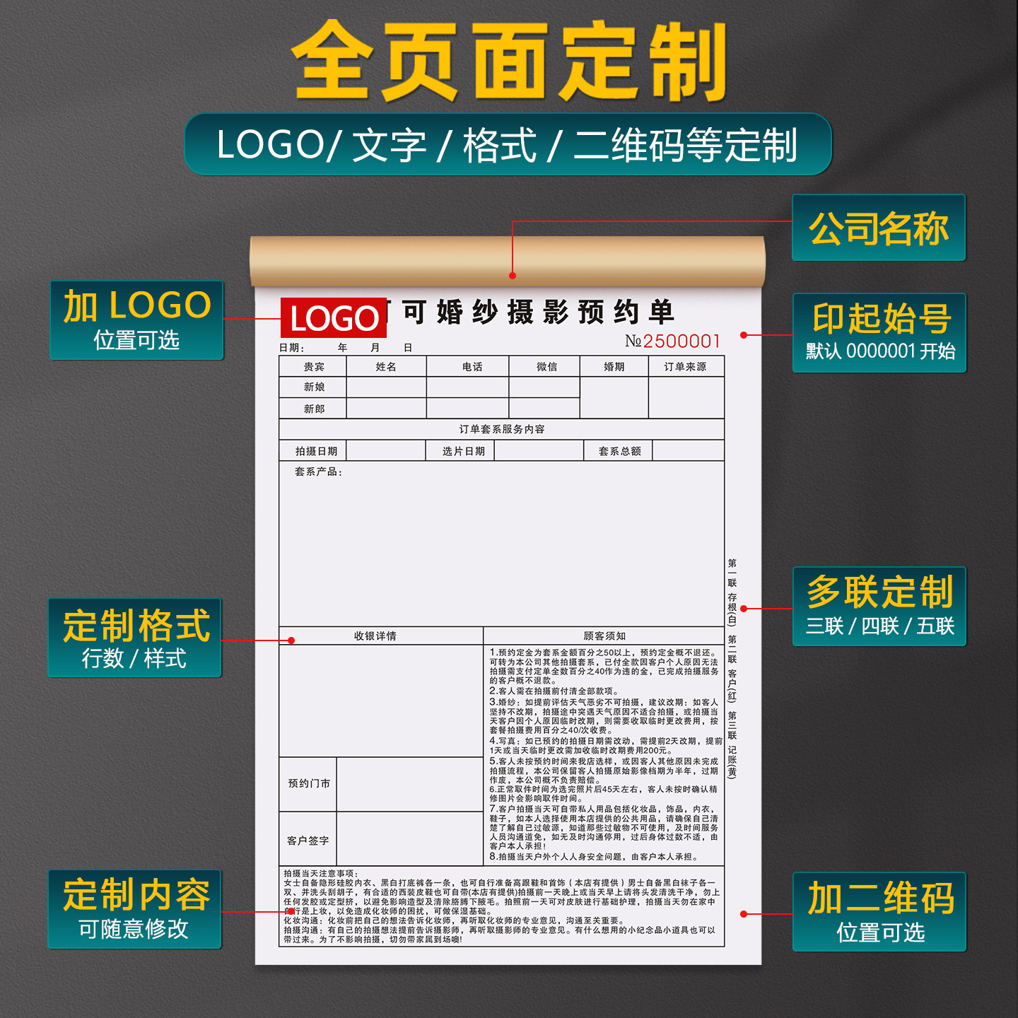 【洛可可婚纱订单本】工作室摄影预约单礼服馆服装租赁合同婚礼策划服务协议艺术照拍照拍摄收据旅拍押金单据