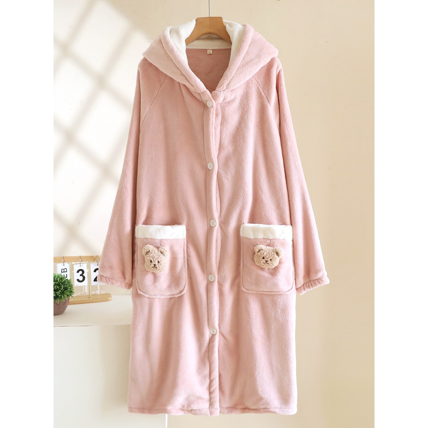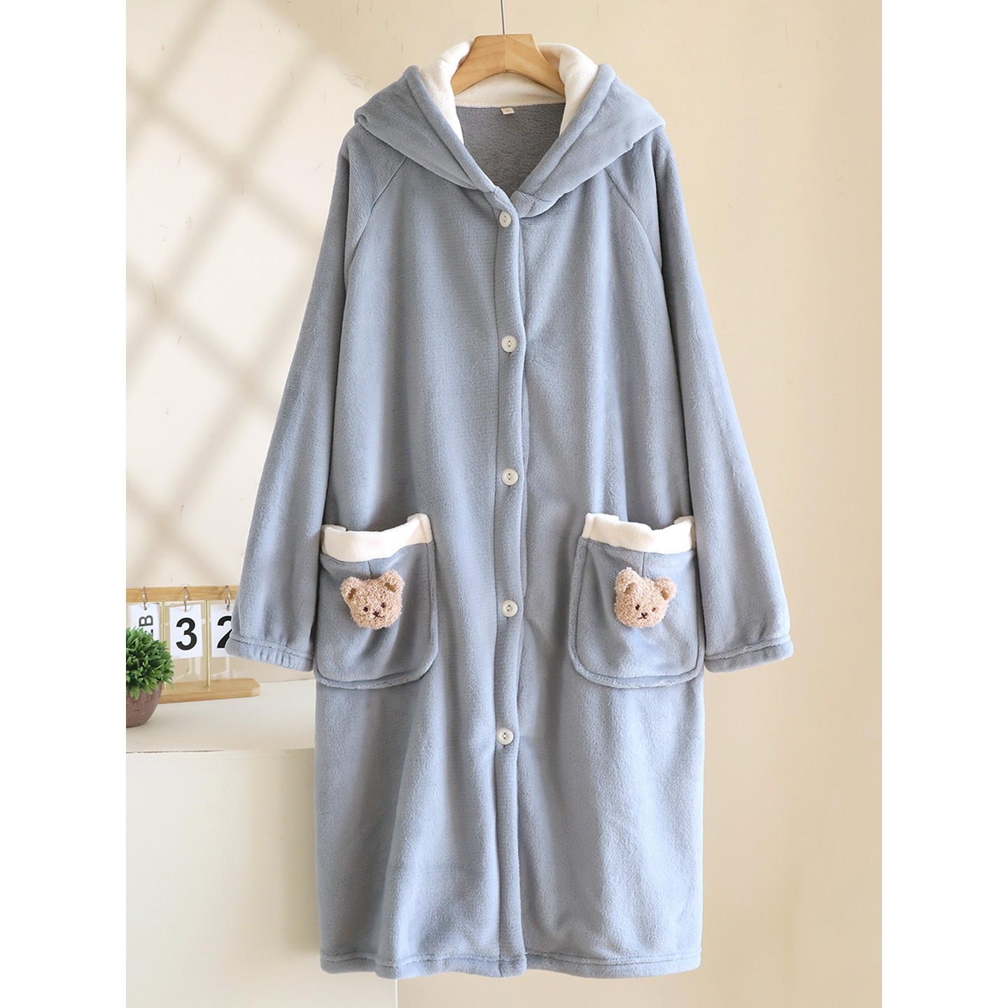 yso【酷猫系列】睡衣女秋冬新款毛绒长款连帽加厚保暖开衫睡袍D