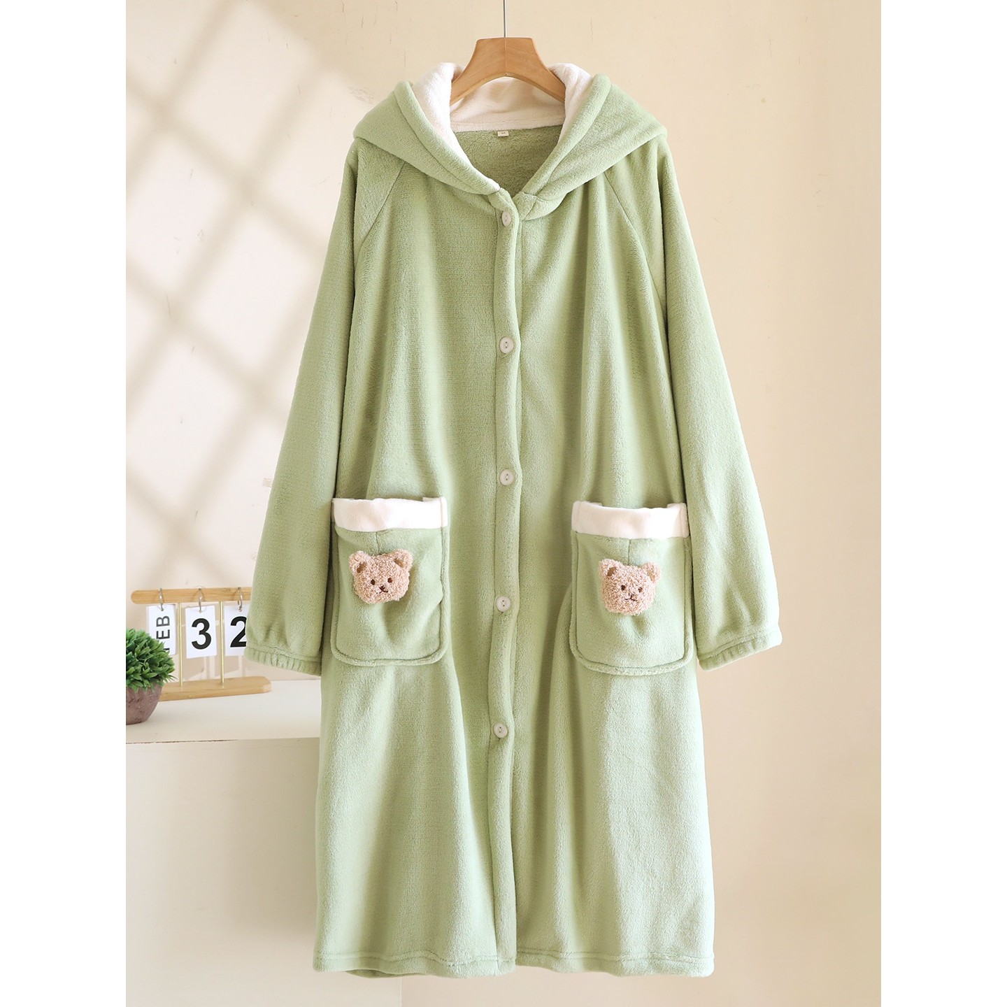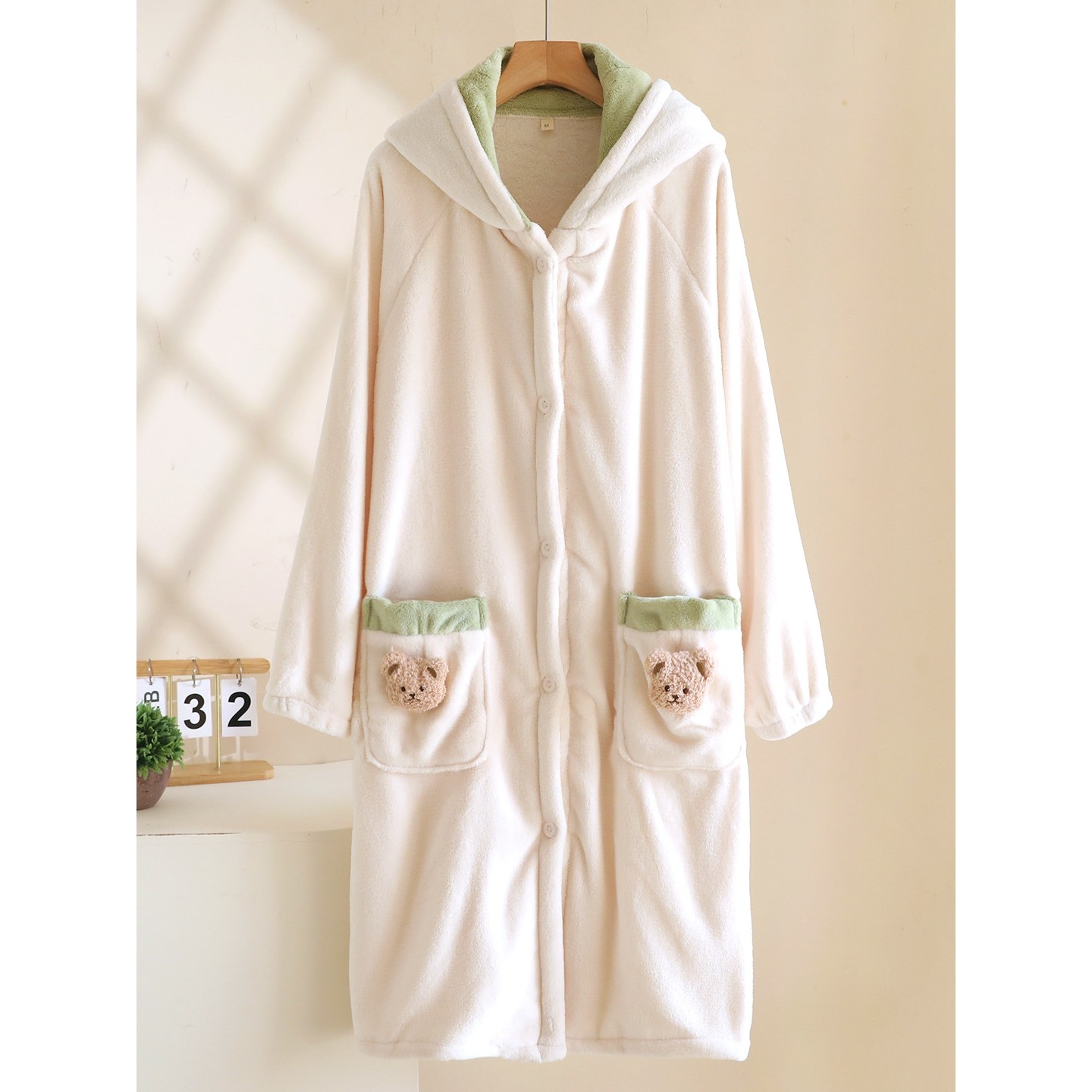 秋冬浴袍可穿浴巾女家用珊瑚绒吸水柔软速干浴裙洗澡睡袍睡衣连帽
