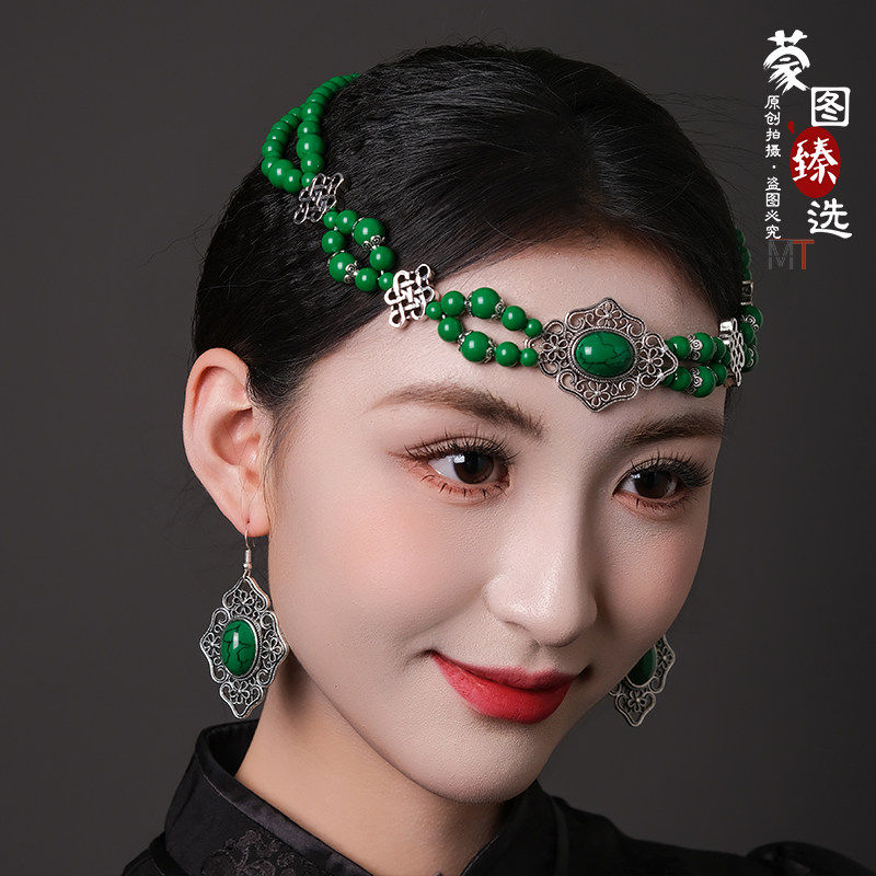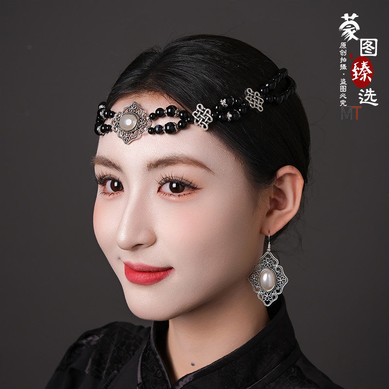 蒙古族舞蹈演出头饰耳环女士手工串珠珠民族舞蹈发饰蒙古服装配饰