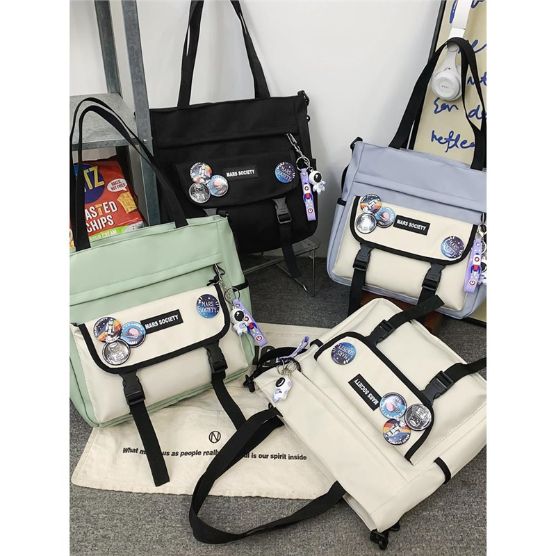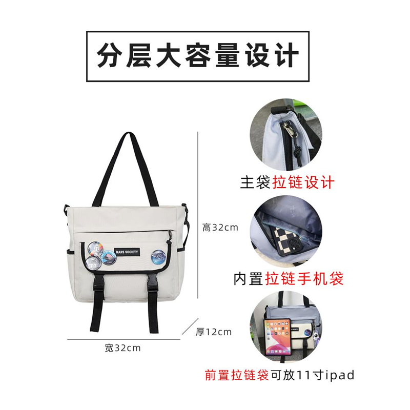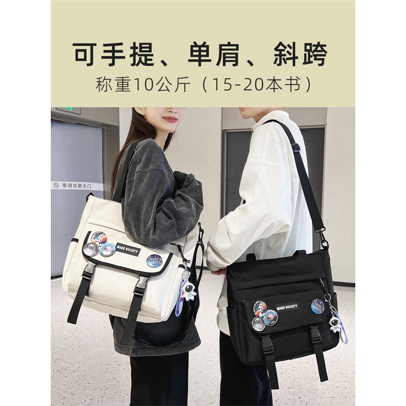 斜挎包男中学生补课男孩帆布袋拎书包单肩初中生高中生补习手提包