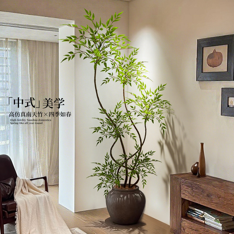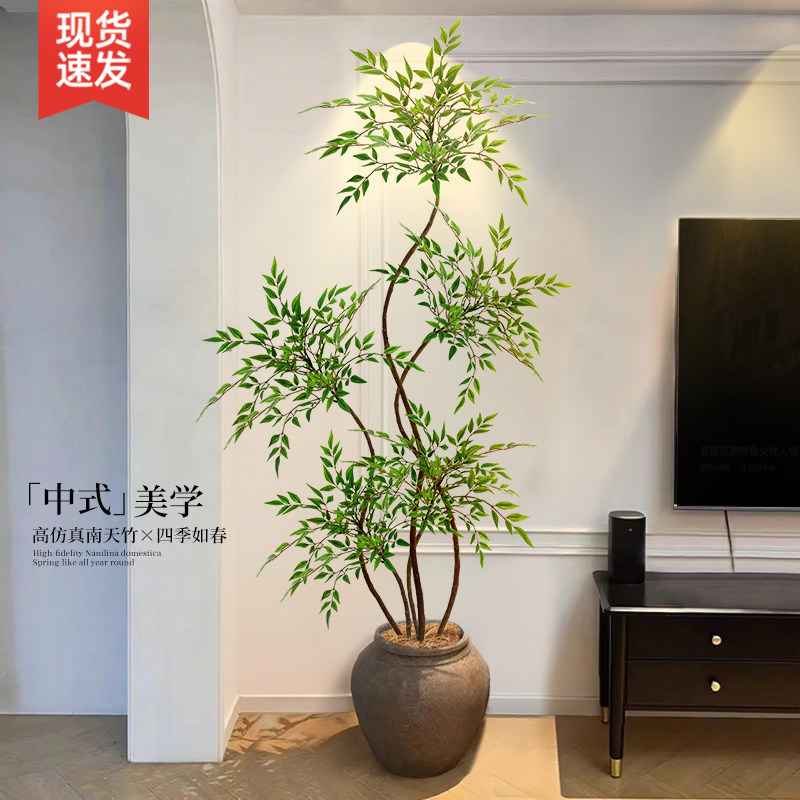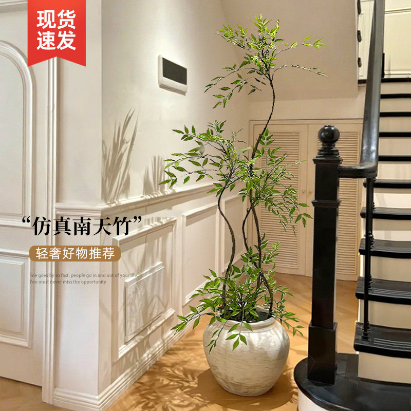 假绿植装饰仿真南天竹室内盆栽大型落地摆件客厅轻奢仿真绿色植物