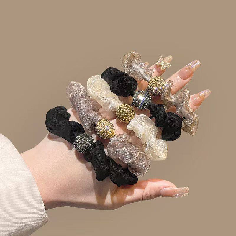头绳女生成人水钻网纱扎头花发绳橡皮筋皮套发圈不伤发弹力大发饰