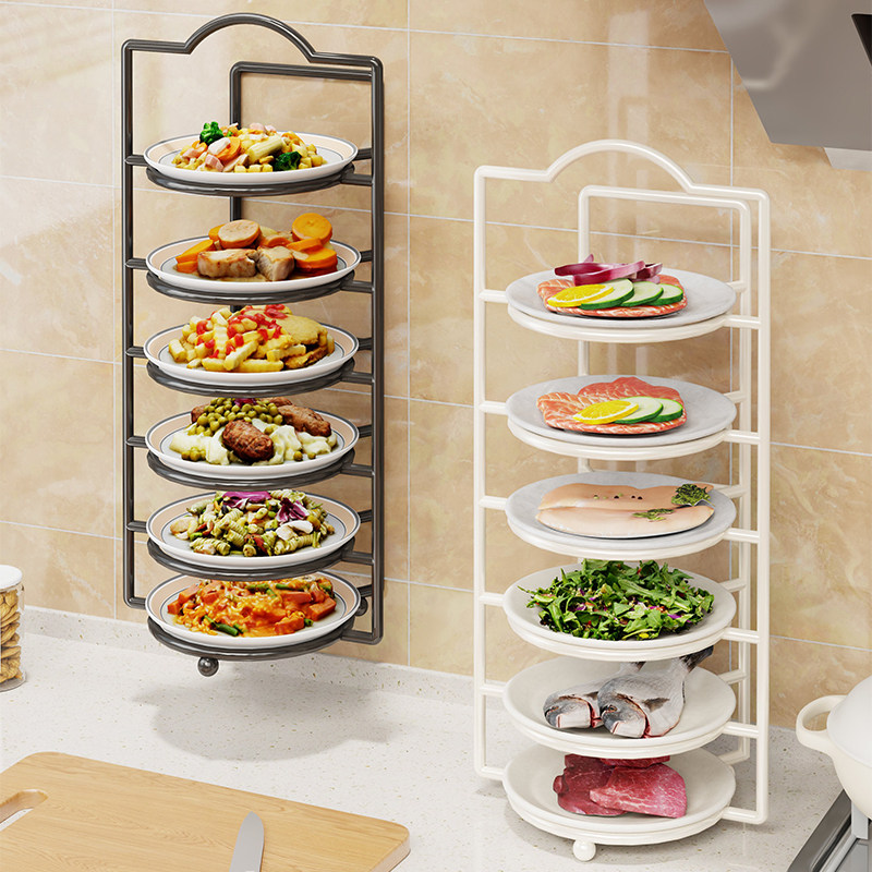 奶油风吸盘备菜置物架厨房可折叠多层多功能配菜盘家用壁挂收纳架