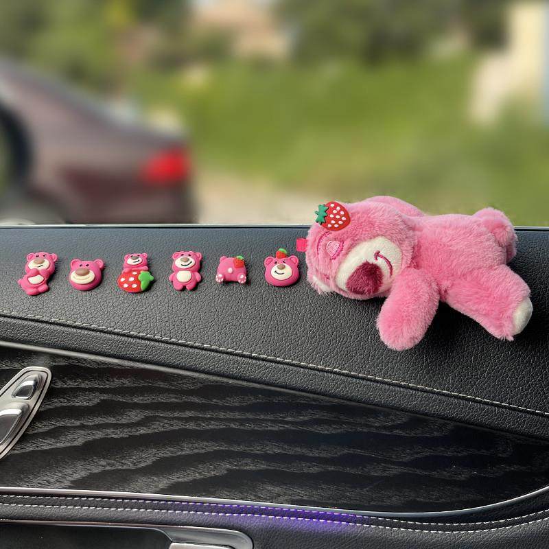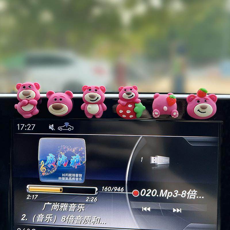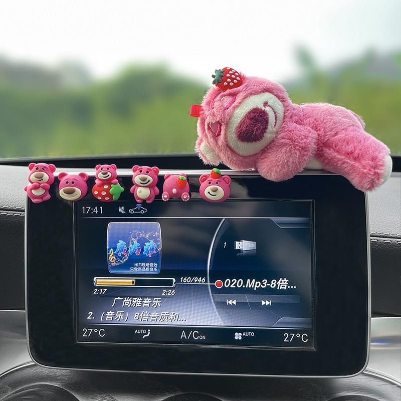 汽车内饰品摆件车载中控台草莓熊公仔玩偶电动车装饰品小配件女