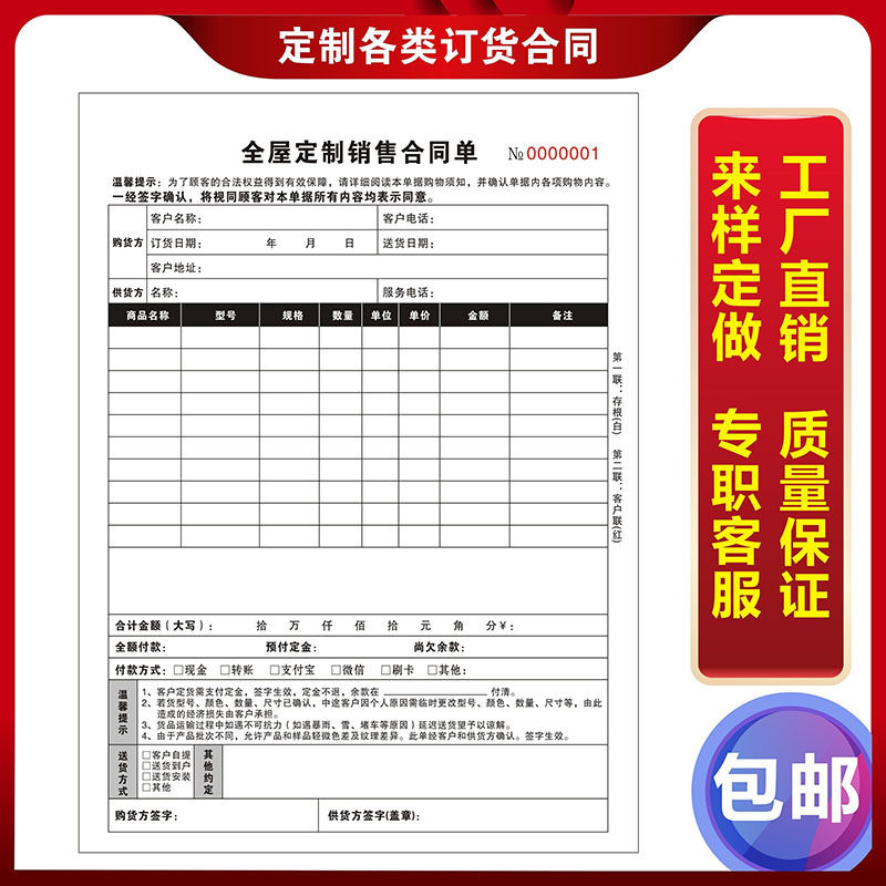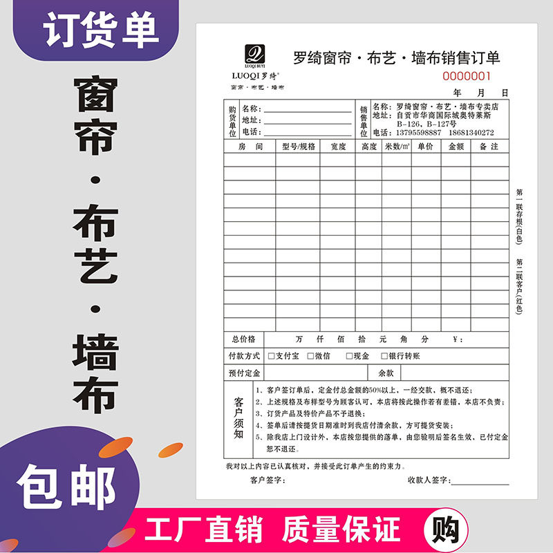送货单定做三联二联家具窗帘订货单门窗销售销货清单全屋定制合同