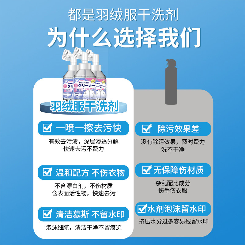 洗羽绒服清洗剂免水洗清洁神器干洗剂去油顽固污渍专用衣服洗涤剂
