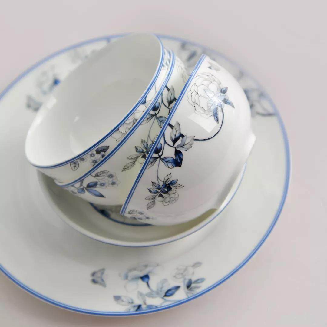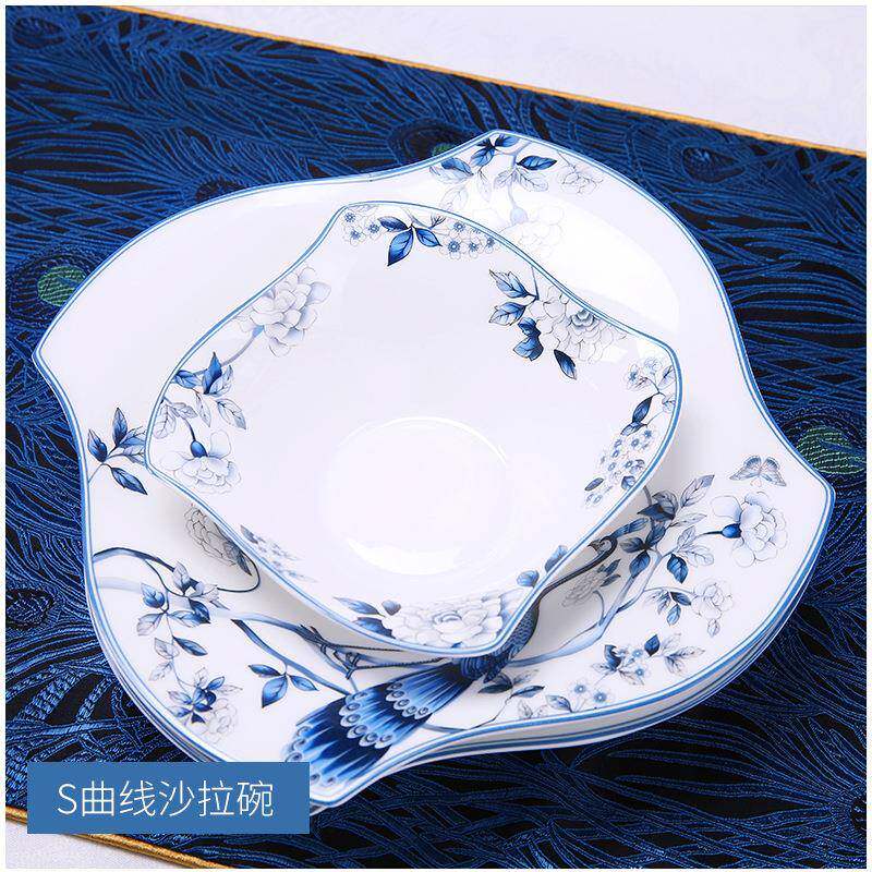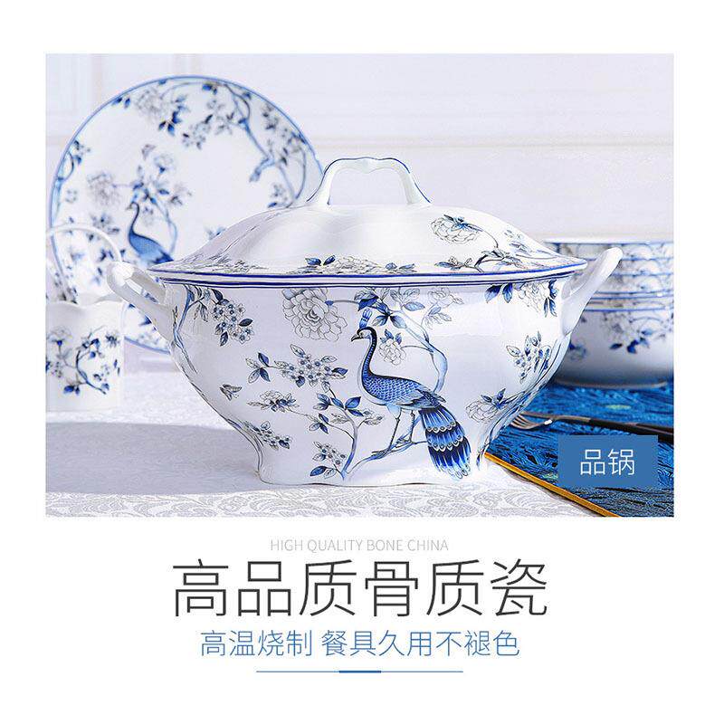 蓝孔雀新中式青花瓷 骨质瓷碗盘碟餐具套装 家用创意送礼吃饭碗