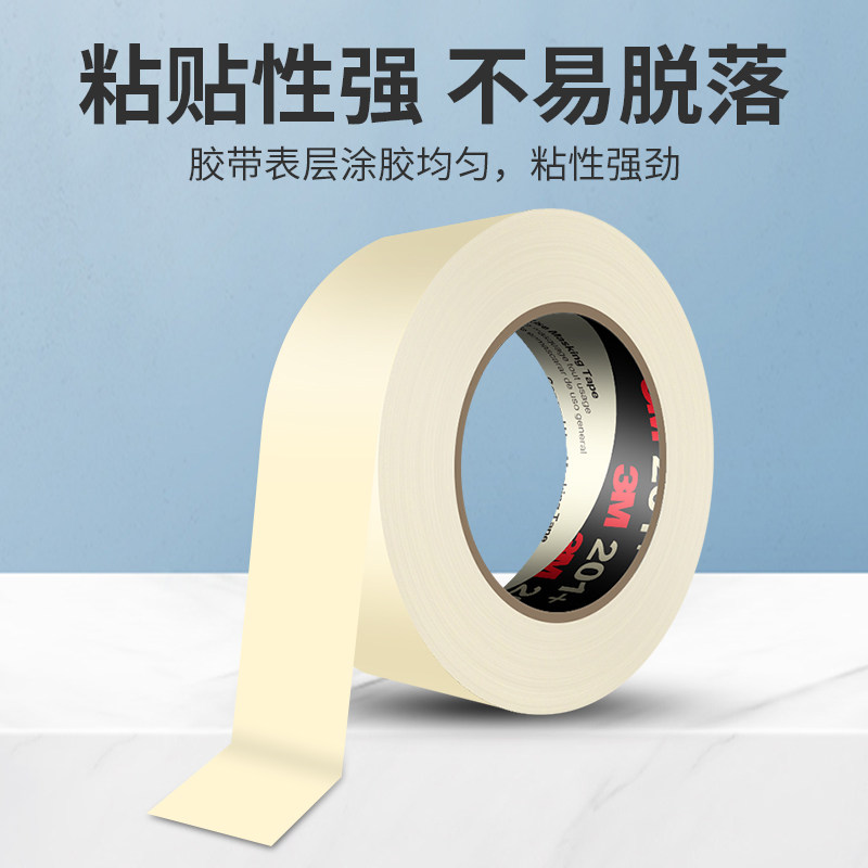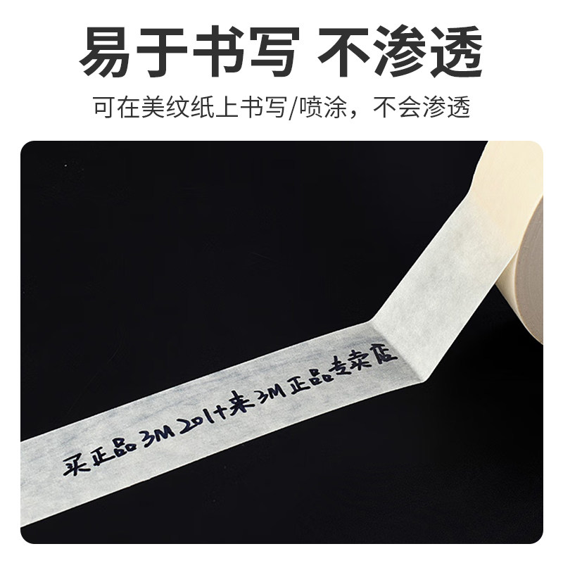 3M201+美纹纸胶带高粘度美术生专用绘画遮盖无痕耐高温易手撕不留胶米白色居家装修装饰汽车油漆遮蔽美缝胶带