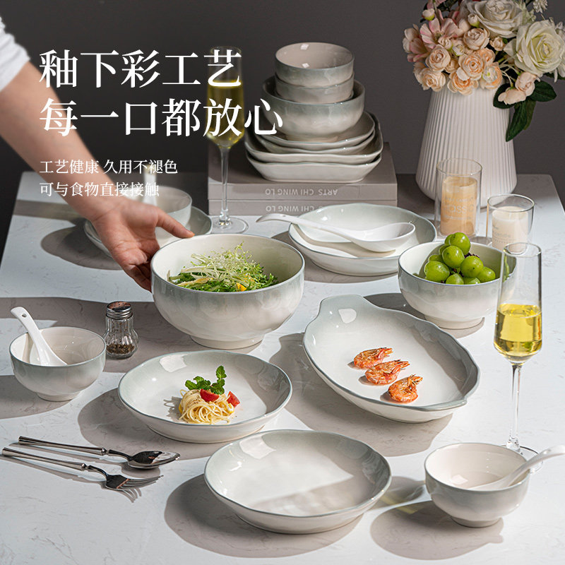 高级感碗碟套装家用2025新款简约碗盘乔迁碗筷陶瓷釉下彩餐具盘子