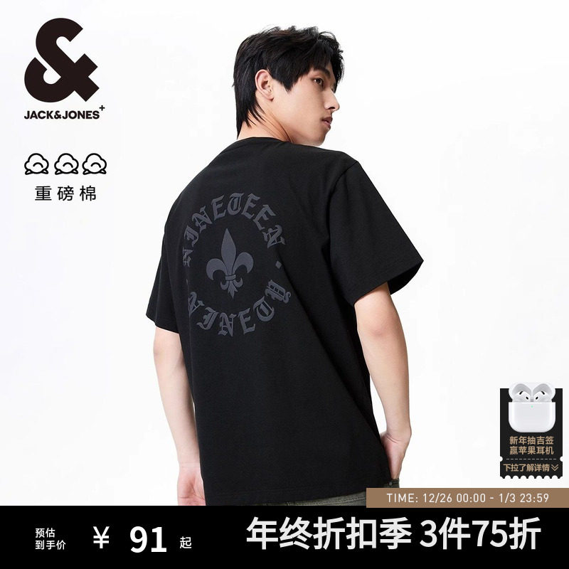 【重磅棉】杰克琼斯男装2025年秋复古哥特男士短袖发泡印情侣T恤