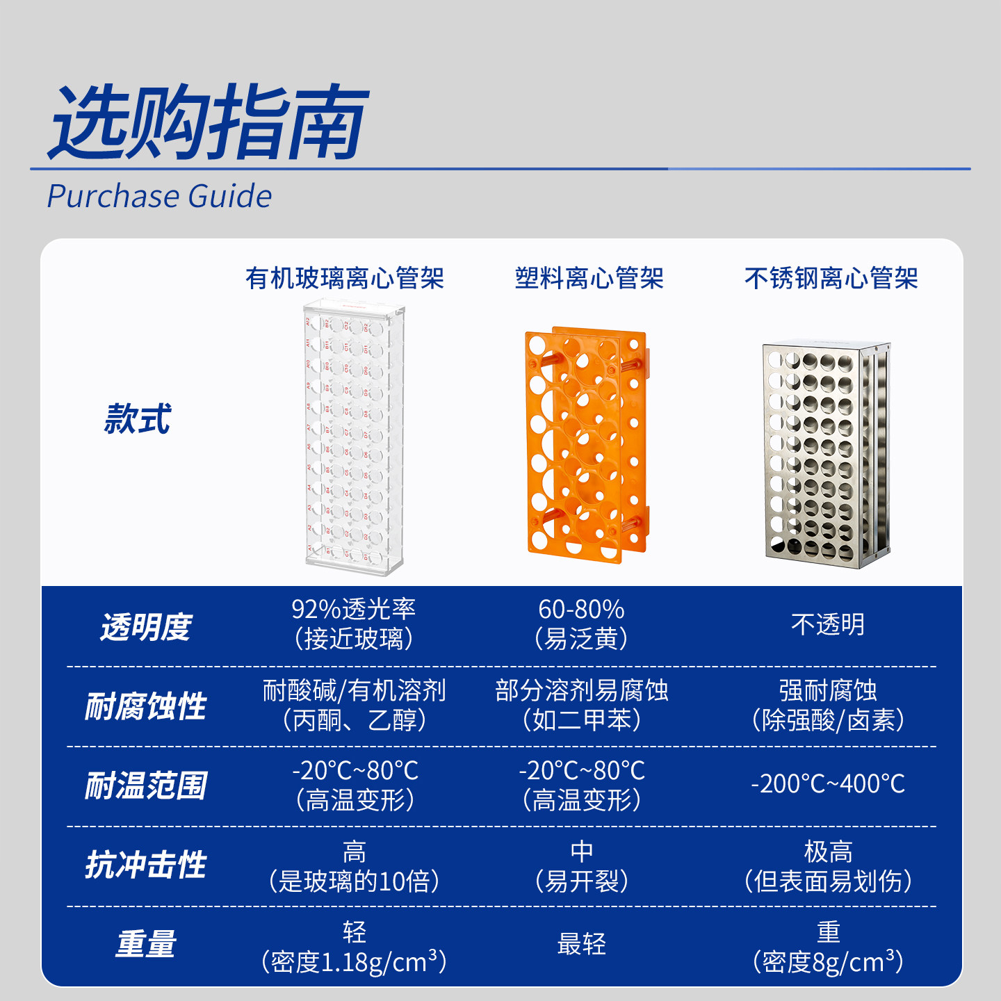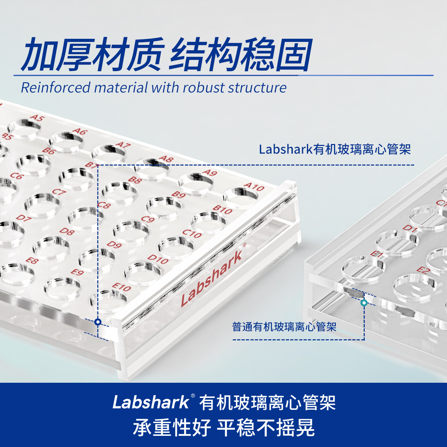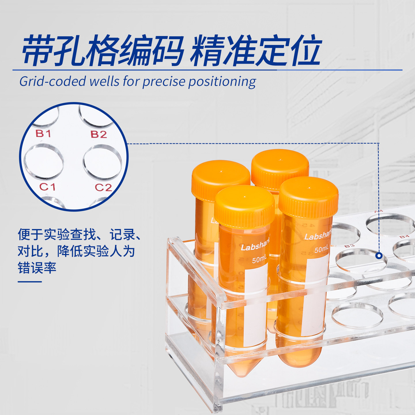 Labshark有机玻璃塑料离心管架实验室用多功能EP试管架24孔PCR管架5mL10mL15mL50mL塑料采样管架8孔10孔18孔