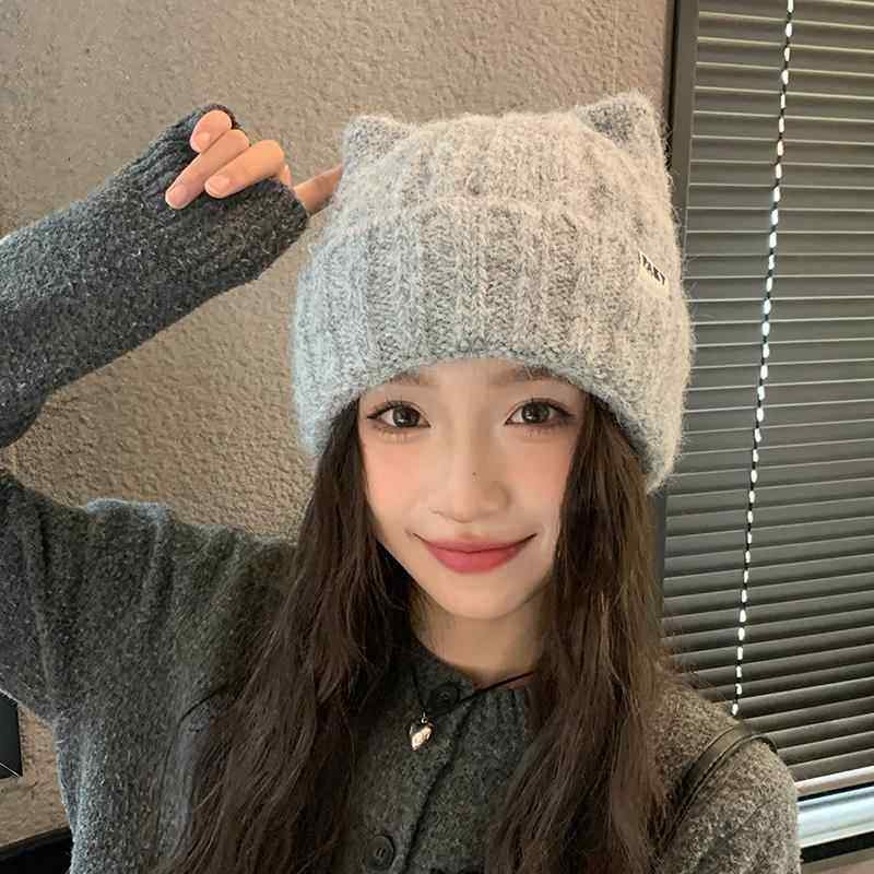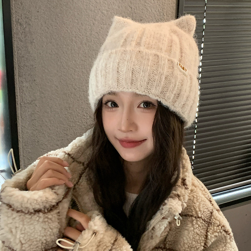 猫耳朵毛线帽子女秋冬季新款日系保暖可爱针织帽韩版休闲百搭冷帽