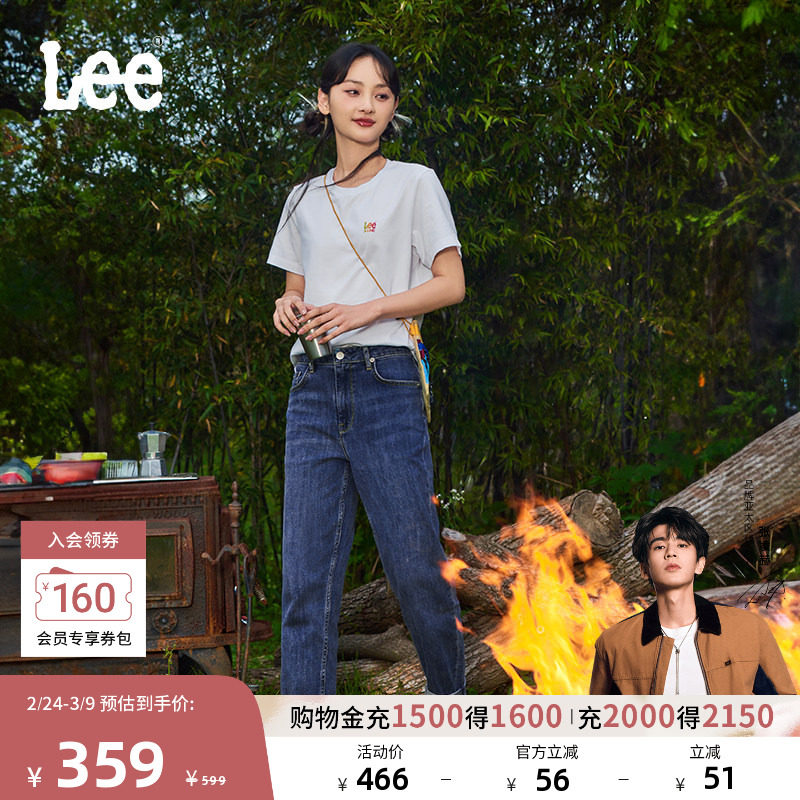 【张凌赫代言】Lee411舒适高腰小直脚显瘦蓝色水洗女牛仔裤潮流