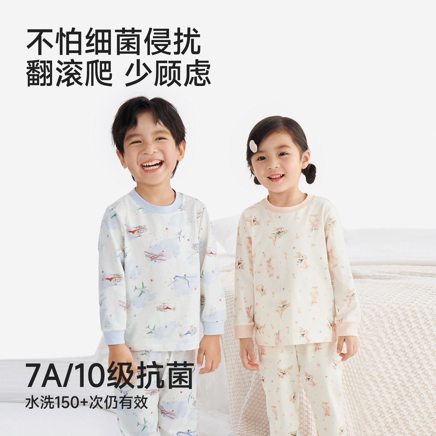 英氏儿童秋衣秋裤女童睡衣乳木果家居服套装秋冬款男童纯棉春秋