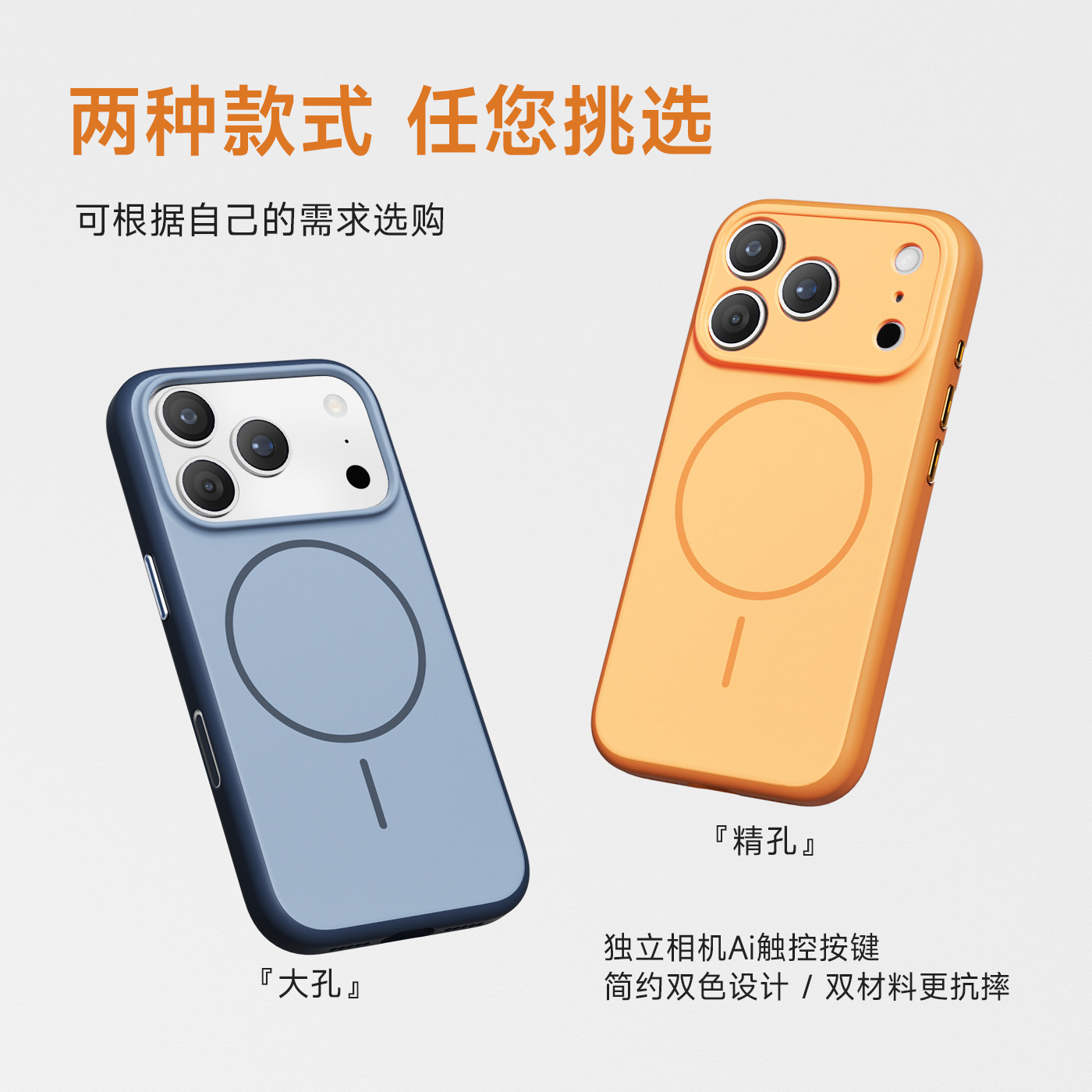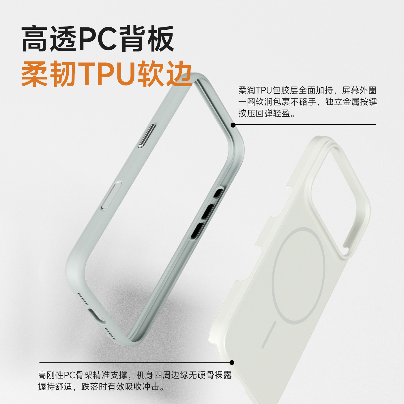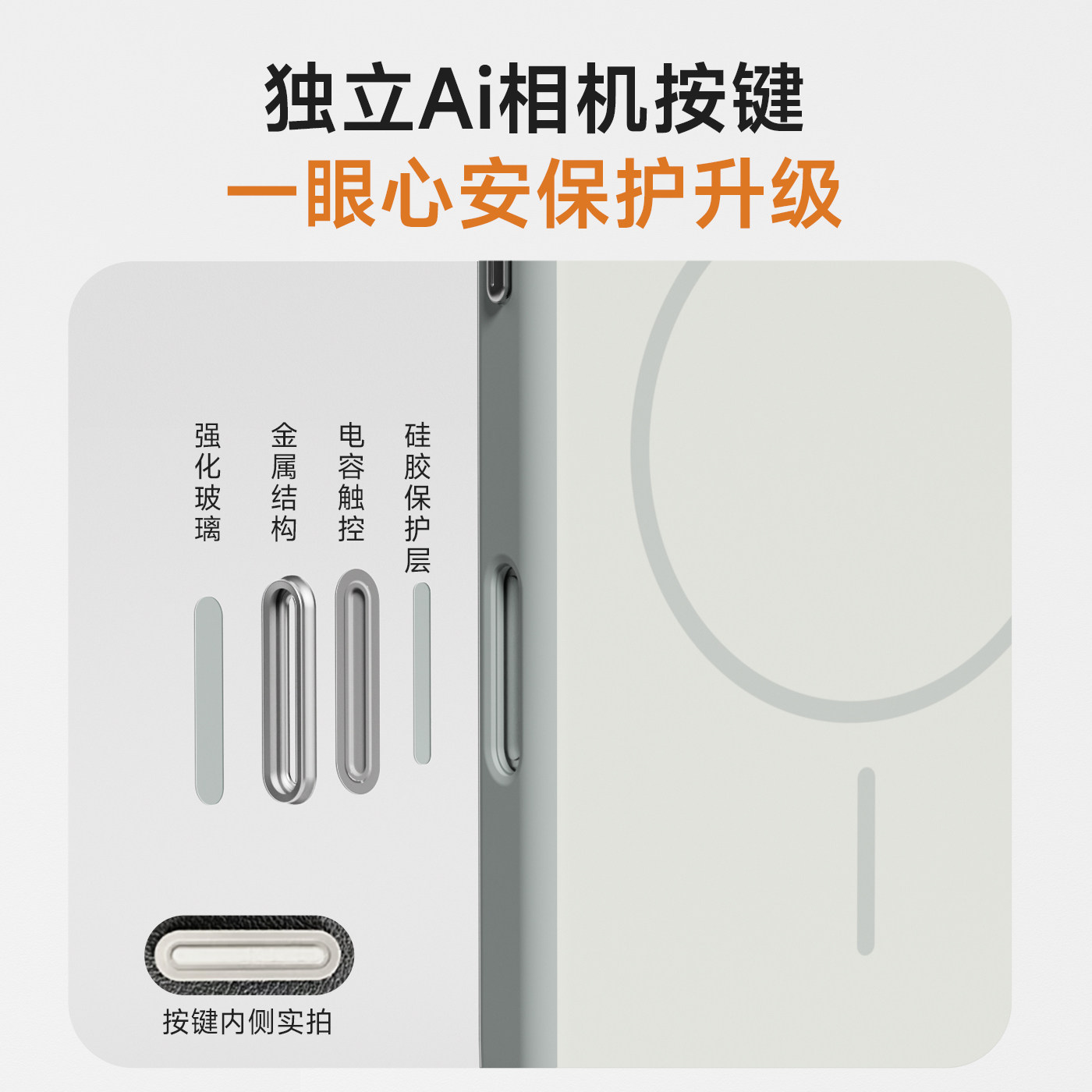 二合一软硬结合、相机触控按键、强力磁吸