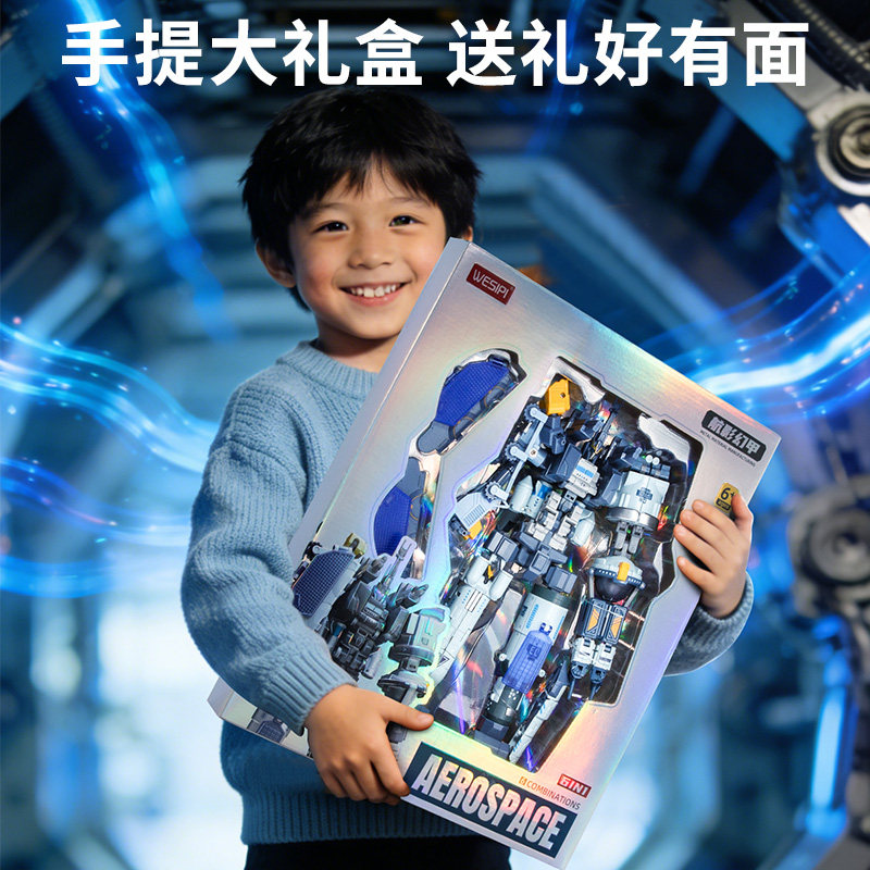 儿童航天飞机变形玩具机甲机器人男孩汽车3金刚4礼物巨人重装合体