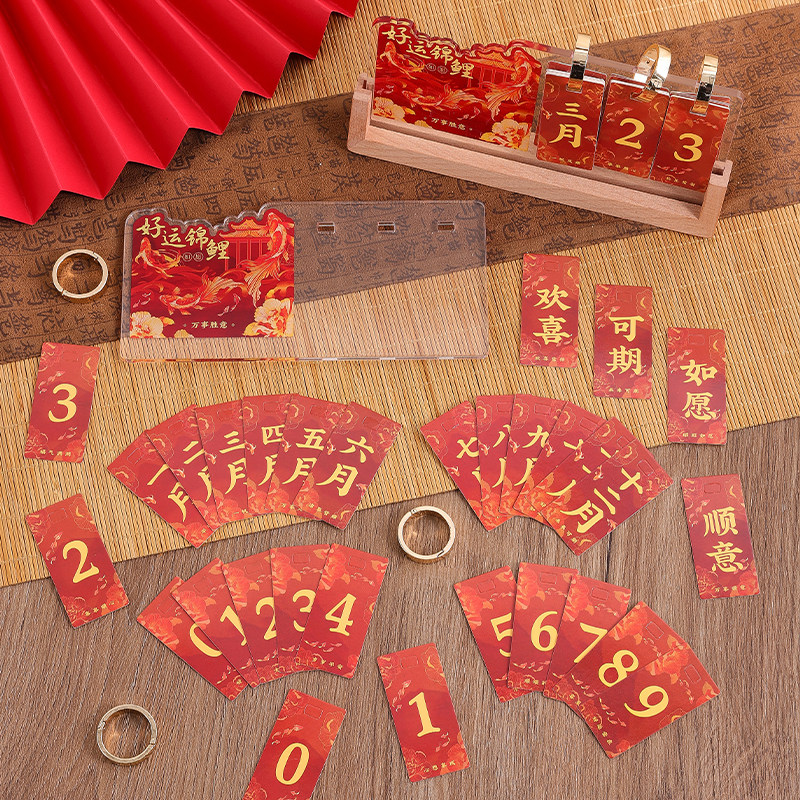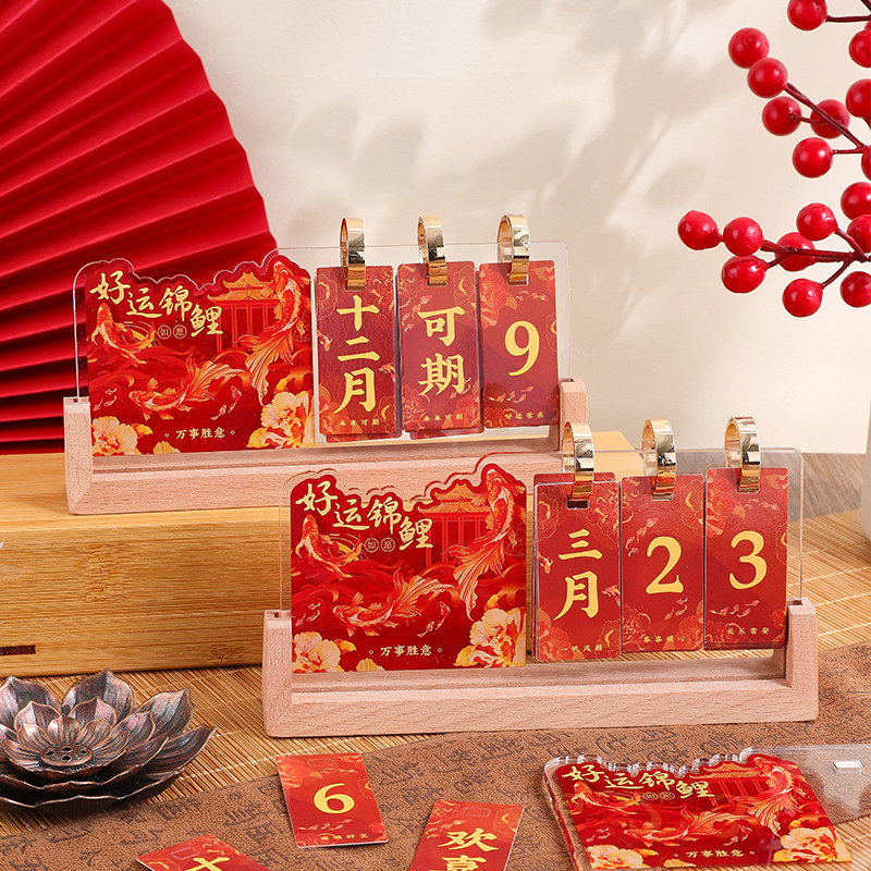 2026年新款好运锦鲤台历亚克力木质台历365天桌面万年历摆件学生中高考倒计时自律打卡月历企业定制新年礼物