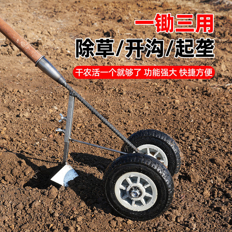 双轮助力推锄犁多功能三合一除草松土锄头手拉开沟翻地三角农用锄