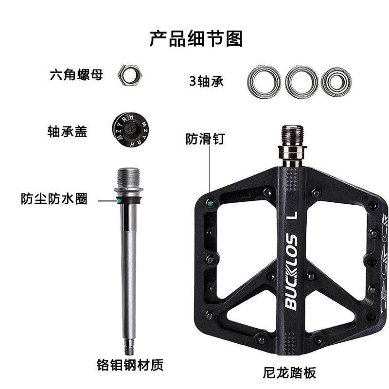 自行车脚踏山地车尼龙培林DU轴承加宽防滑骑行踏板公路车脚踏