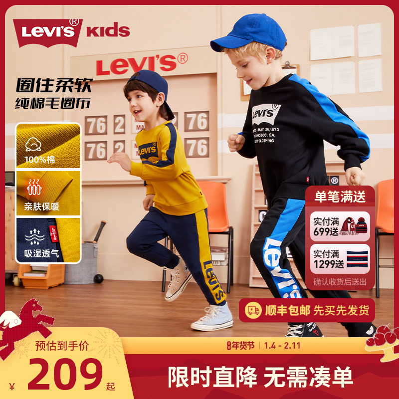 李维斯童装男童套装2026春秋新款儿童长裤卫衣运动两件套装新年红