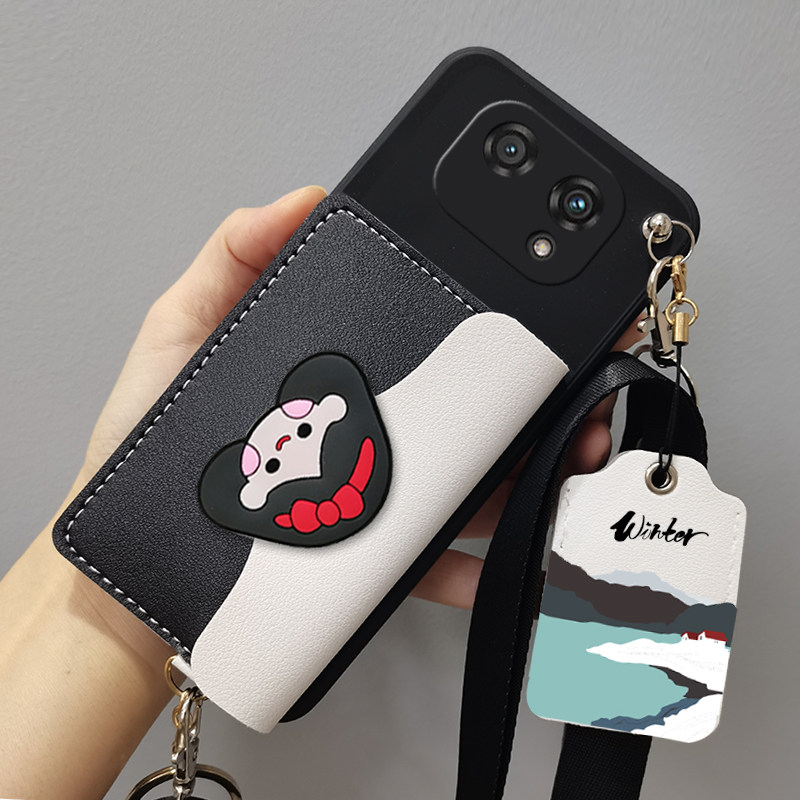 适用小度青禾学习手机 W30手机壳零钱包斜挎XD-SEE00-2302保护套新款新年款零钱包新款软外壳挂软斜挎背挂绳