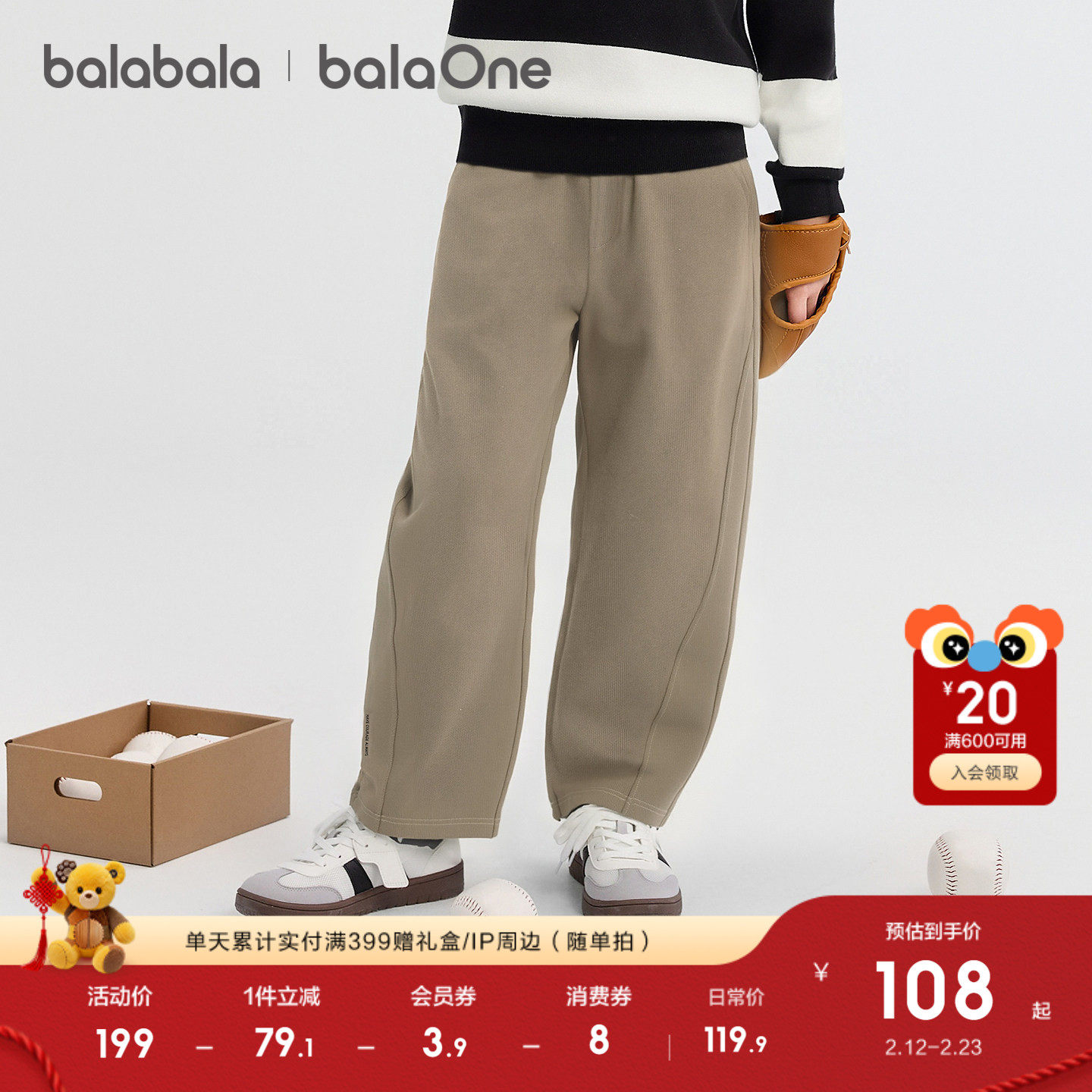 【balaOne】巴拉巴拉童装男童长裤儿童裤子2025新款秋装镰刀裤潮