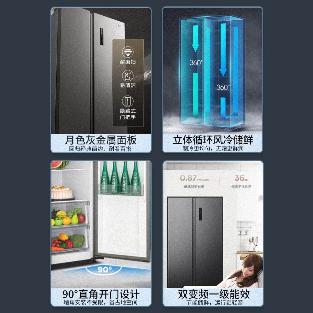 美的572L对开双开门大容量风冷无霜变频家用节能低音电冰箱