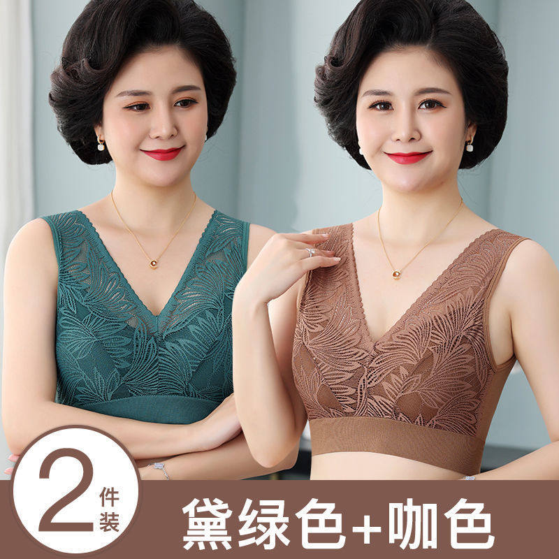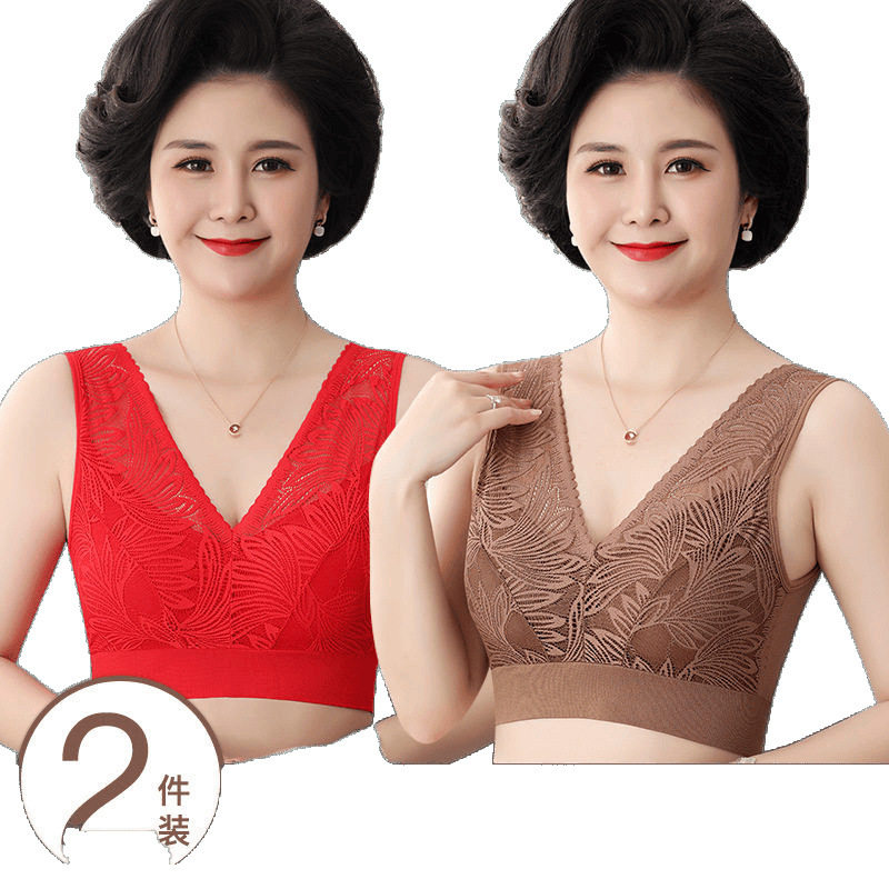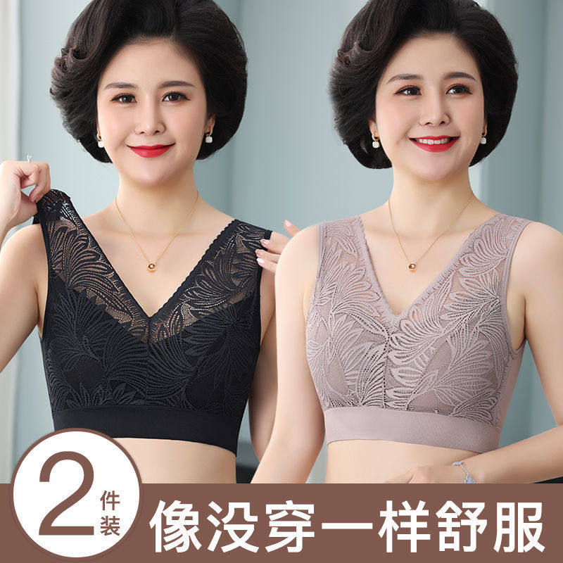 中老年蕾丝内衣女无钢圈背心式文胸妈妈胸罩聚拢防下垂防走光裹胸