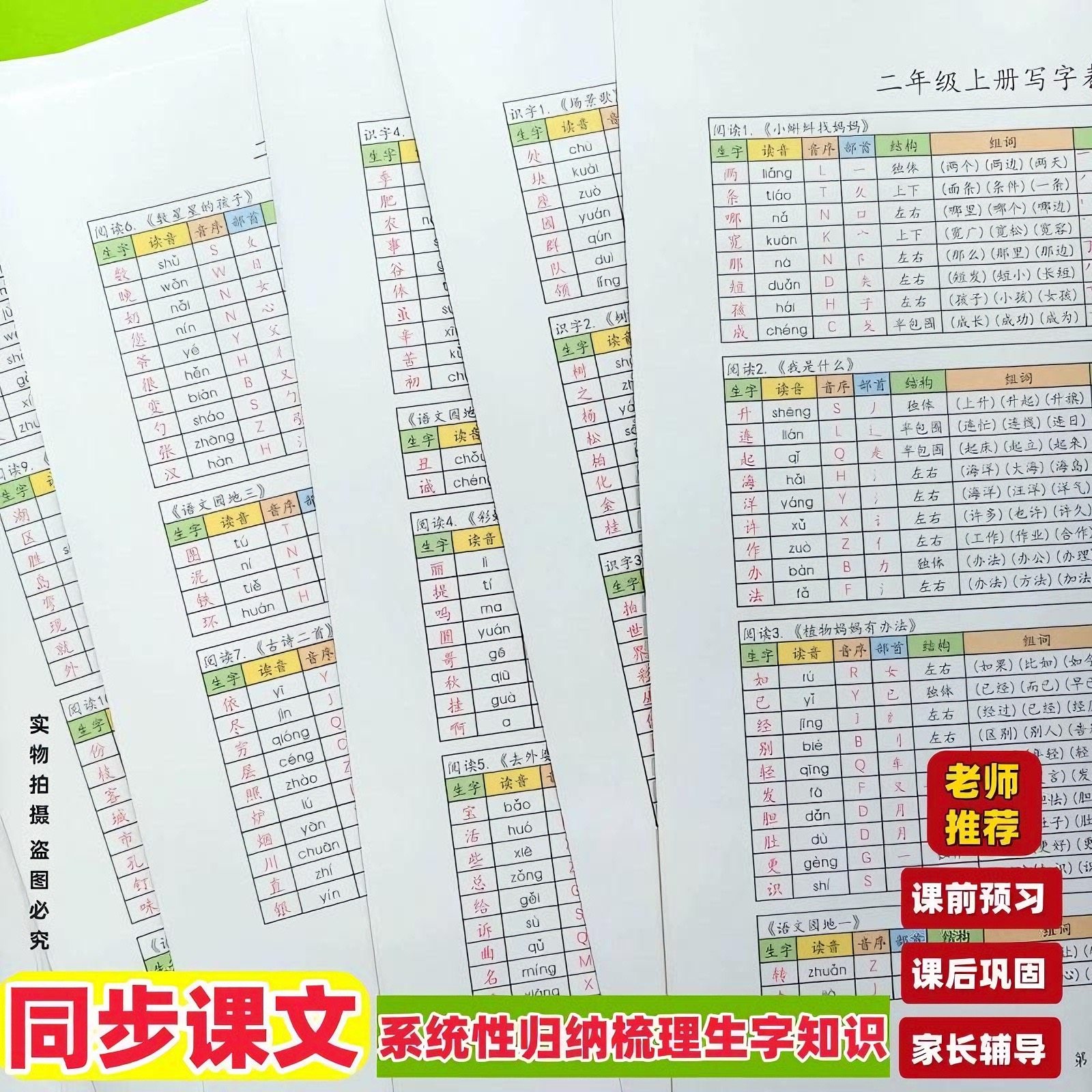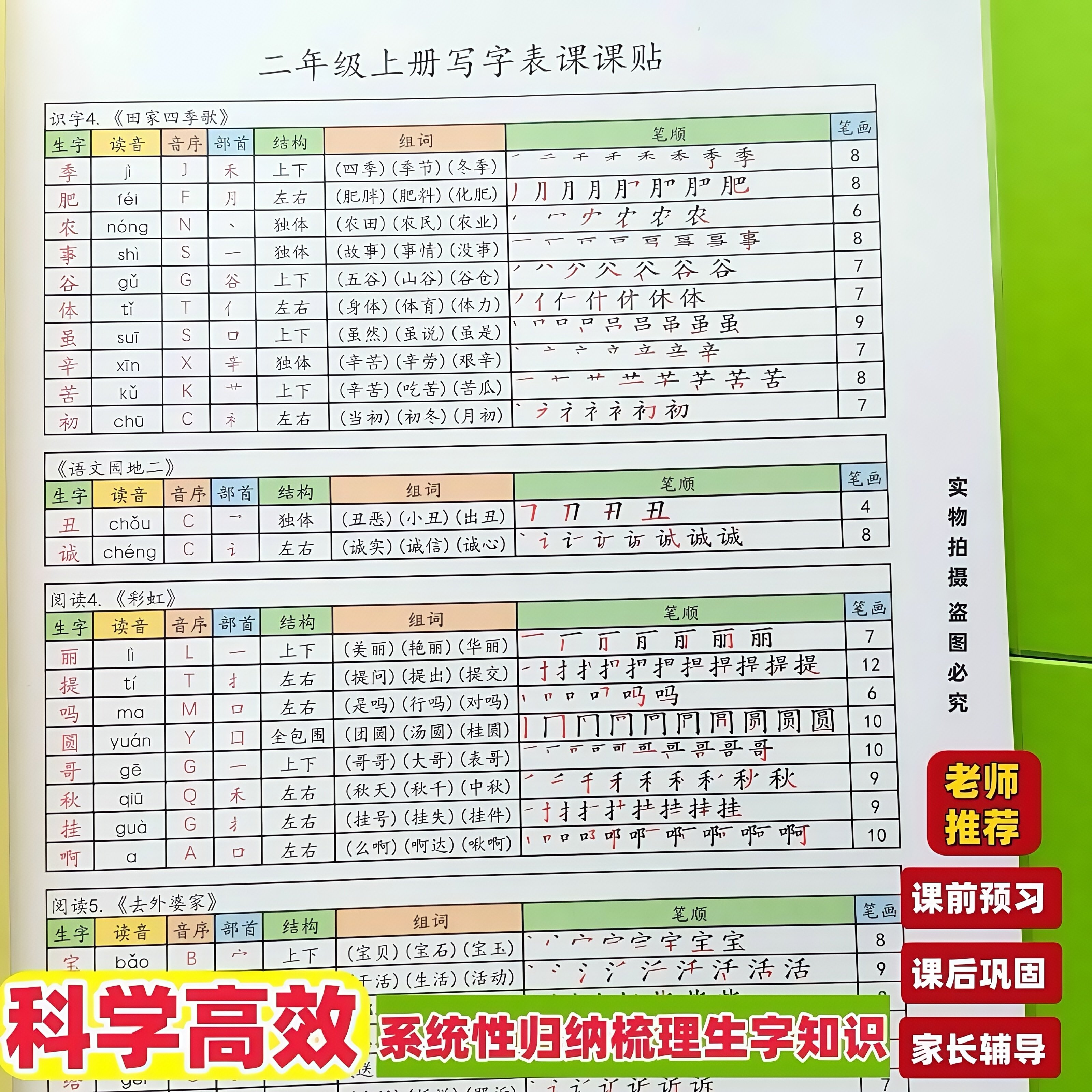 2025新版二年级语文上册透明款课课贴不干胶音序部首结构组词笔顺