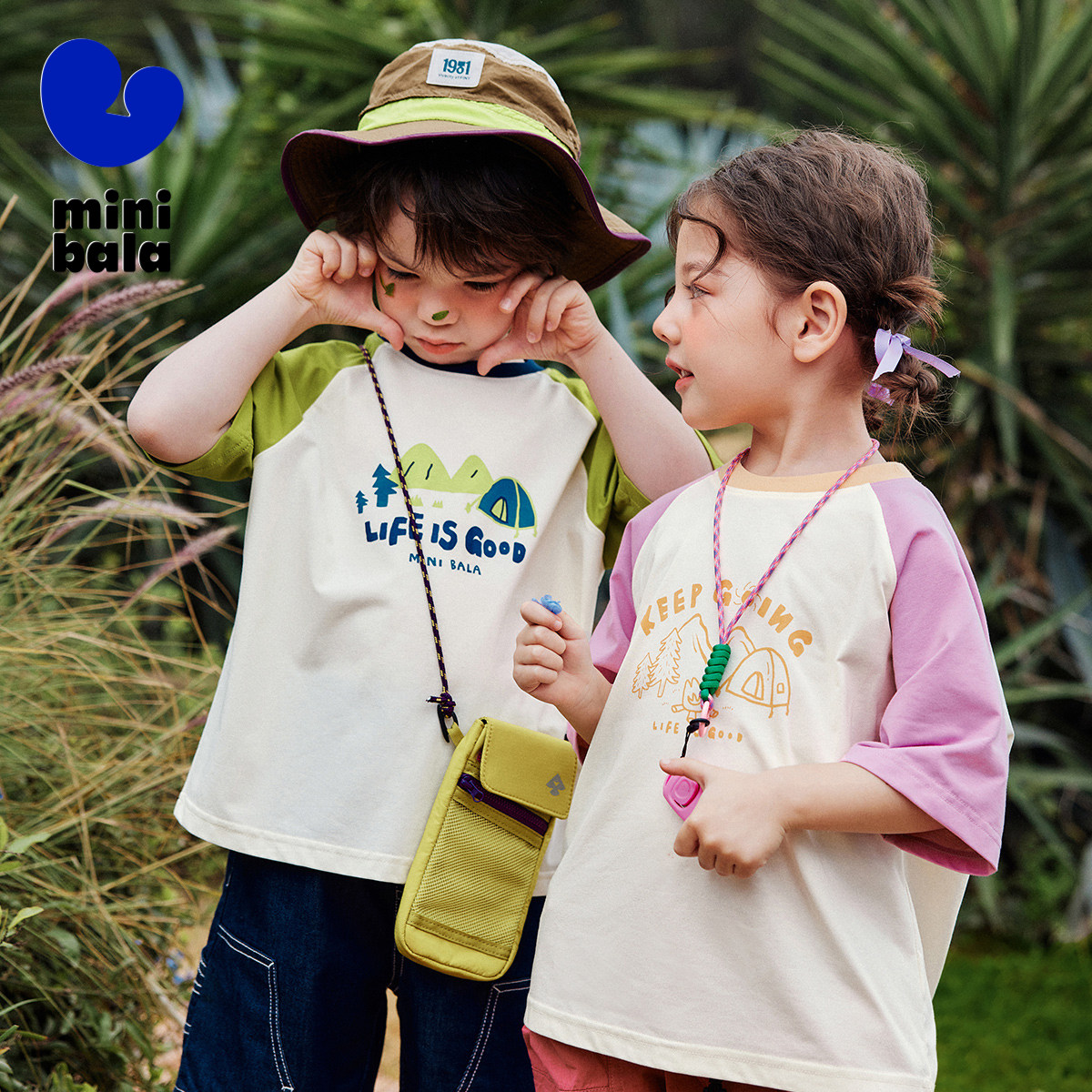 迷你巴拉巴拉男女童短袖T恤夏插肩袖棉凉感儿童圆领半袖速干上衣