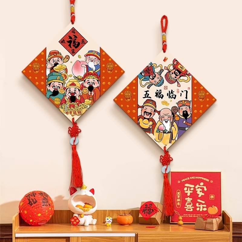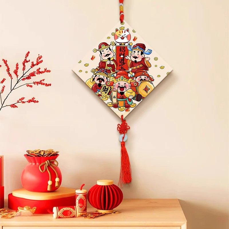 五路财神玄关背景墙装饰画新年春节2026年客厅喜庆布置装饰品挂饰
