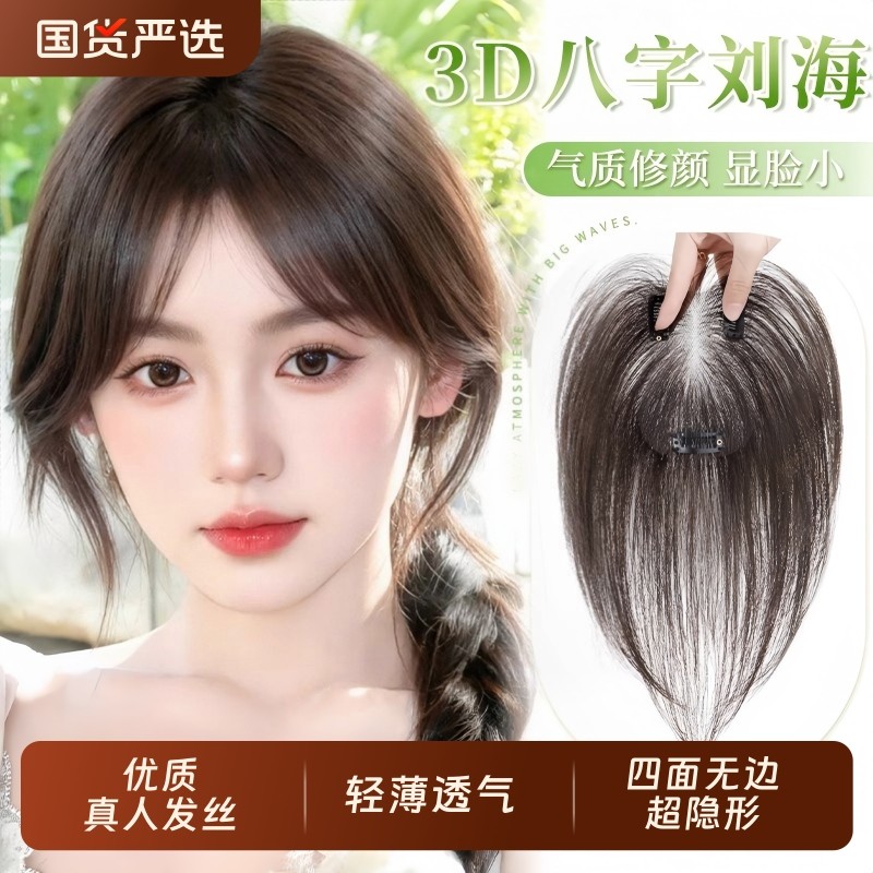 八字刘海假发女片头顶仿真发遮白发蓬松高颅顶隐形自然无痕补发片
