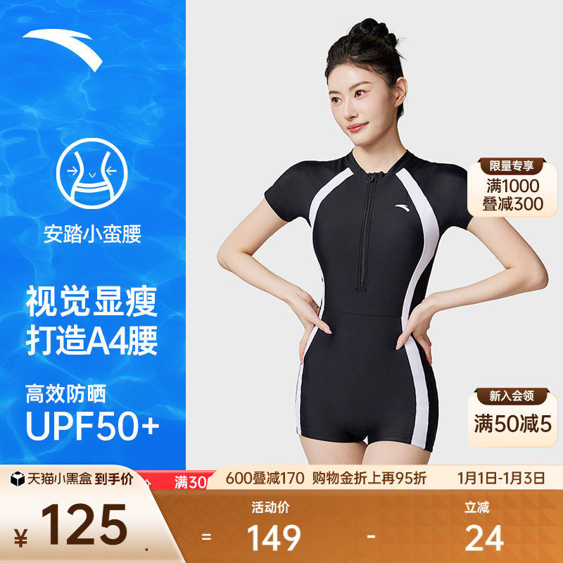 安踏小蛮腰丨连体泳衣女款游泳短裤平角专业防晒显瘦温泉度假泳装