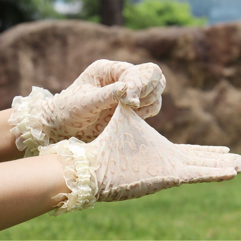 夏季防晒薄款蕾丝手套开车防紫外线黑色网纱花边跳舞舞蹈礼仪手套