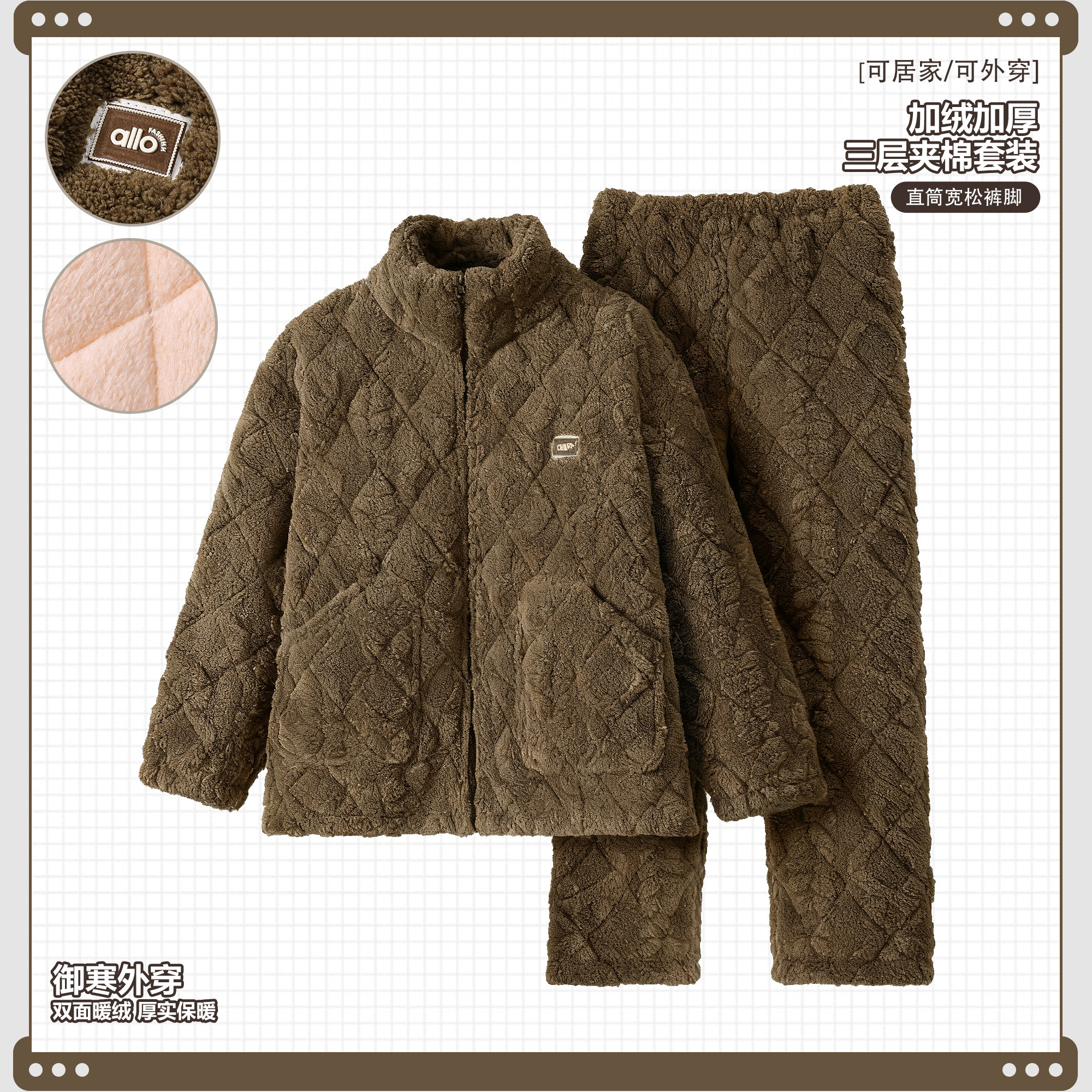 男士睡衣冬季珊瑚绒三层夹棉加厚加绒男款青少年2025年新款家居服
