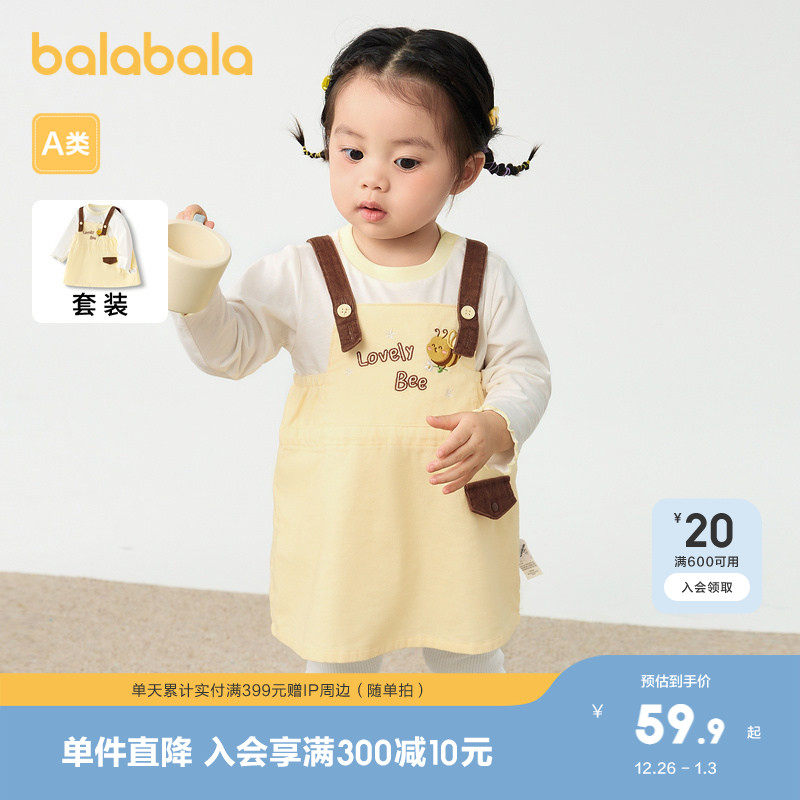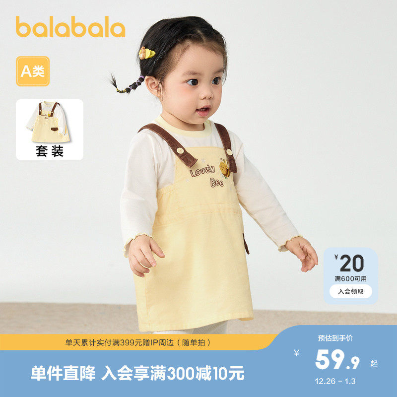 巴拉巴拉宝宝秋装女童长袖套装儿童衣服背带裙两件套可爱活力洋气