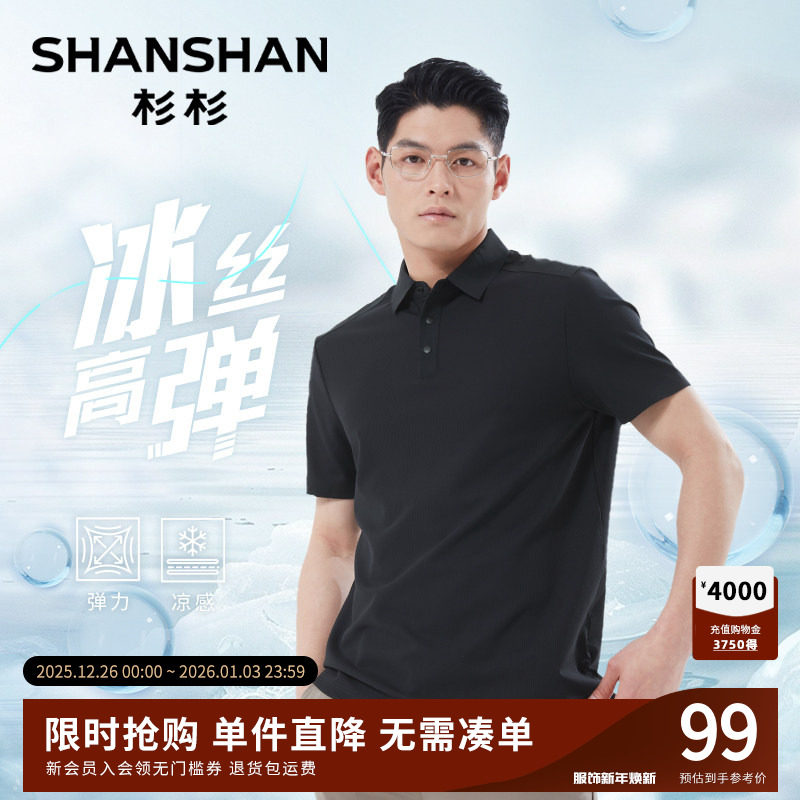 杉杉男士短袖t恤polo衫男款2025夏季新款运动户外速干凉感冰丝