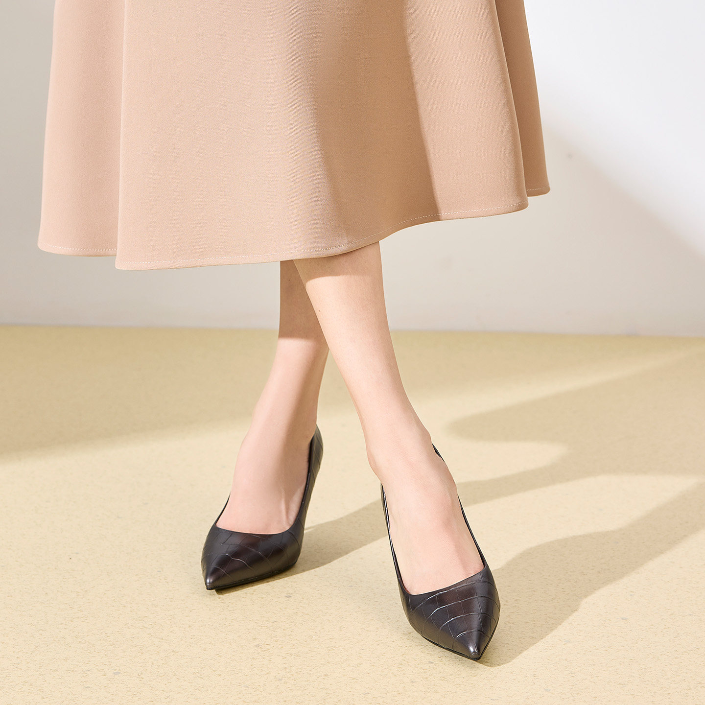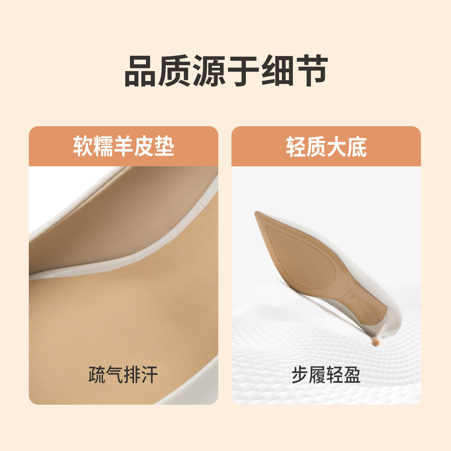 【明星同款|静音系列】千百度练习曲裸色高跟鞋真皮通勤法式单鞋