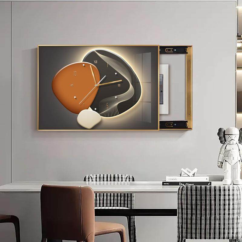 石来运转餐厅电表箱带钟表装饰画现代轻奢配电箱遮挡开关盒挂画