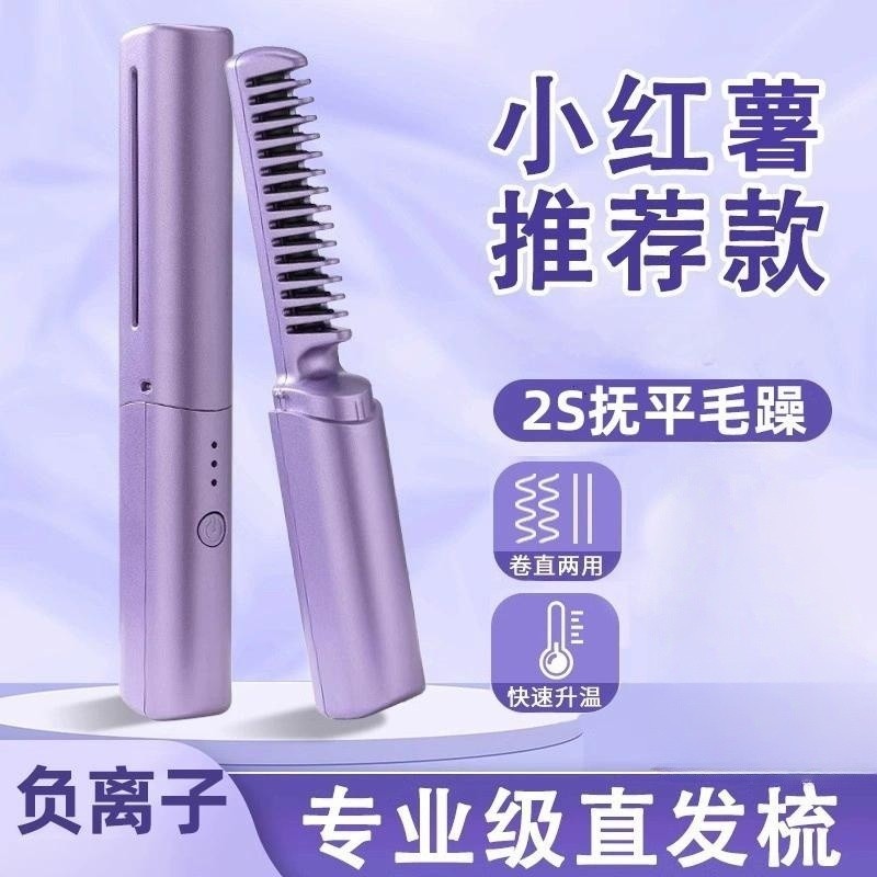 迷你无线直发梳负离子不伤发便携式持久定型充电直板夹卷发棒神器